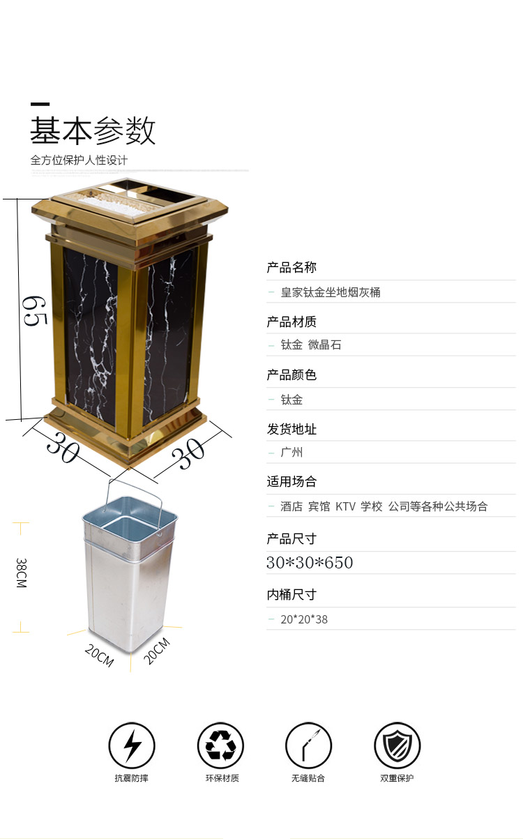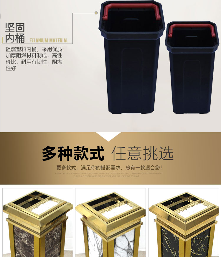 Thùng rác bằng đá cẩm thạch sảnh khách sạn thép không gỉ lối vào thang máy khách sạn hành lang dập lửa tòa nhà văn phòng thùng rác thương mại