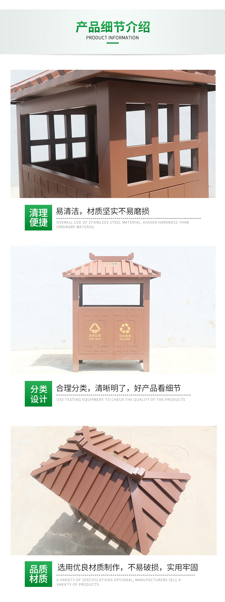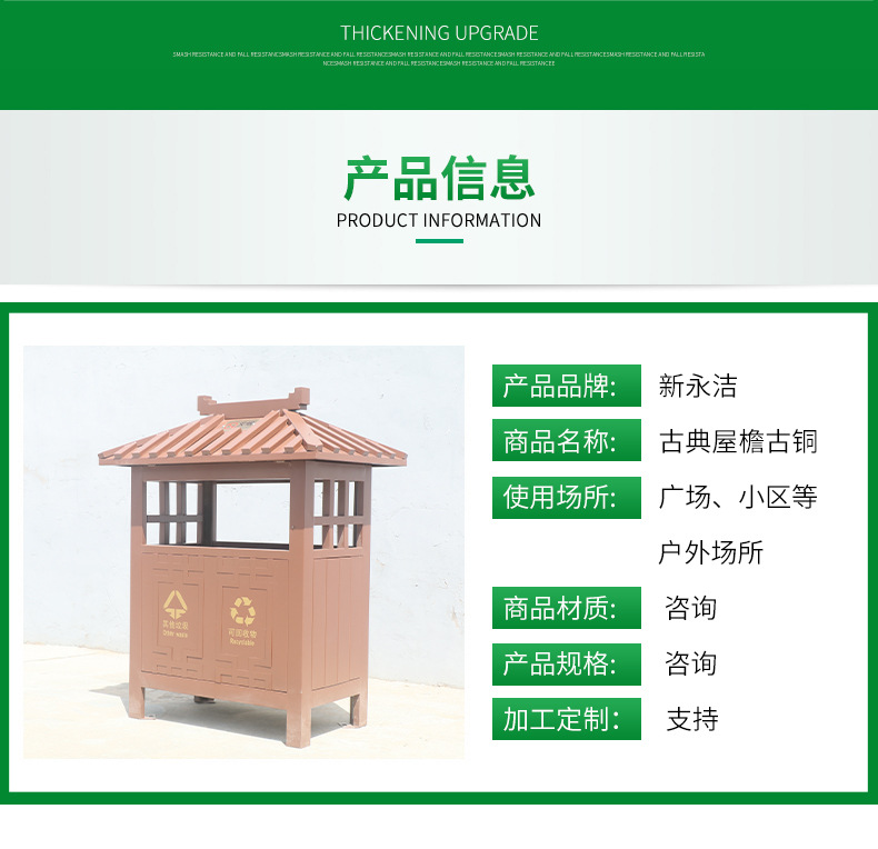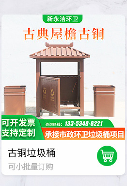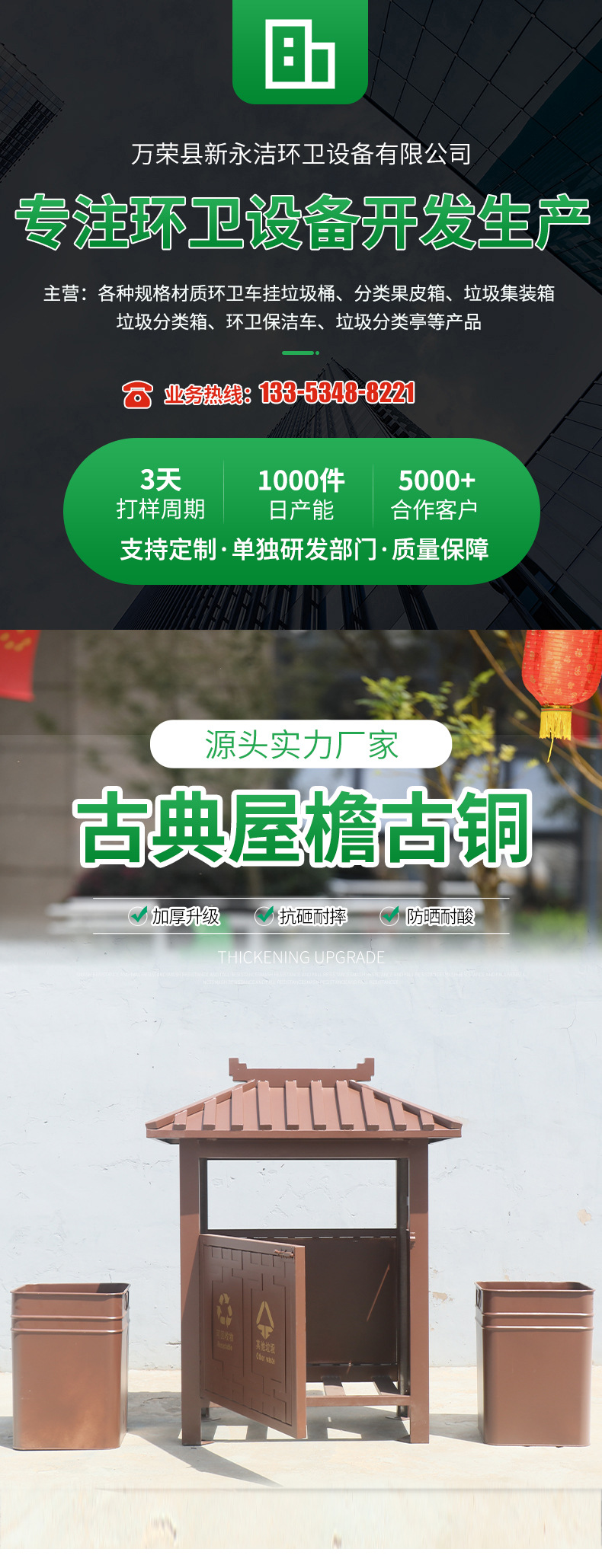 Thùng rác bằng đồng mái hiên cổ điển ngoài trời, hộp phân loại rác khu danh lam thắng cảnh công viên, thùng đựng rác vệ sinh đô thị