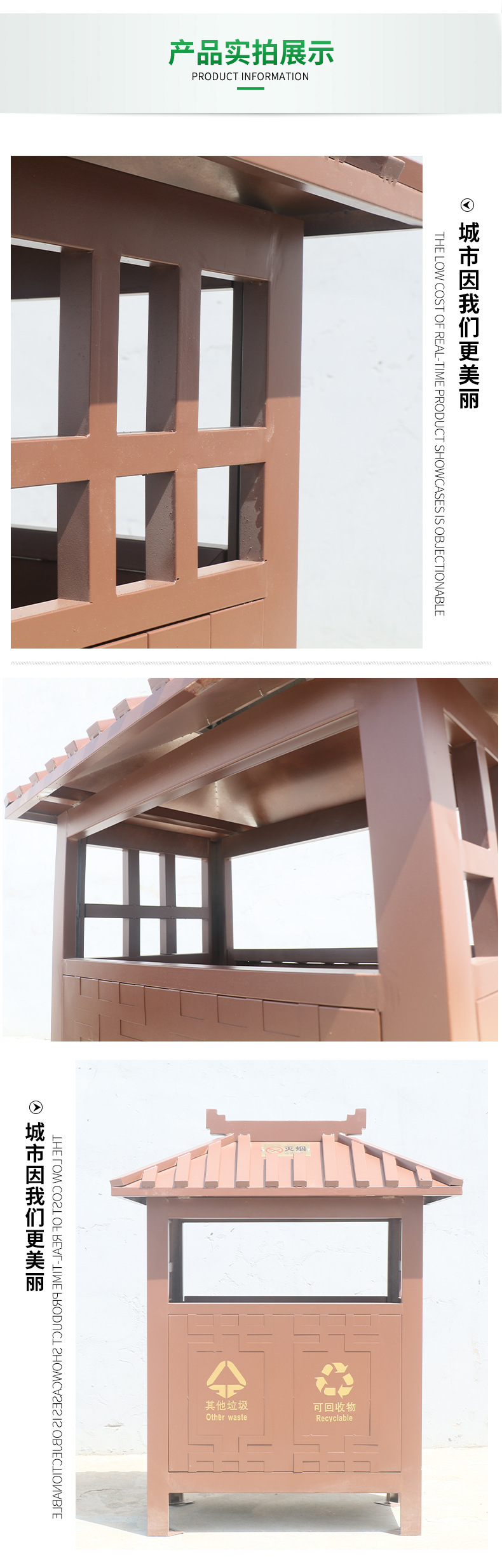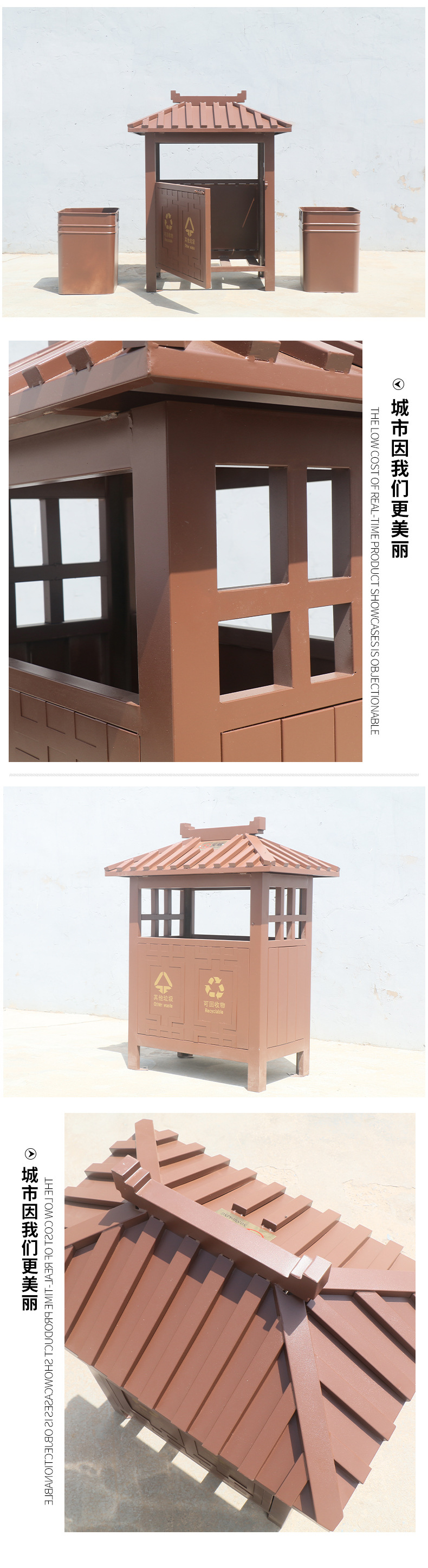 Thùng rác bằng đồng mái hiên cổ điển ngoài trời, hộp phân loại rác khu danh lam thắng cảnh công viên, thùng đựng rác vệ sinh đô thị