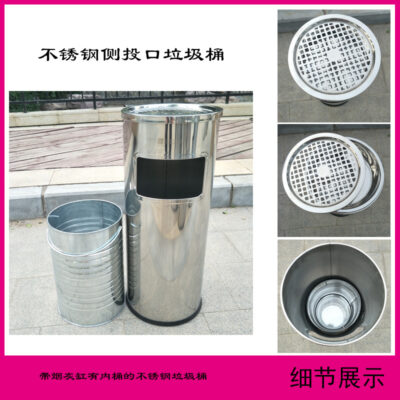 Thùng rác bằng thép không gỉ ngoài trời với thùng bên trong trung tâm mua sắm trong nhà hộp vỏ công nghiệp lật nhà sản xuất thùng rác phong cách Hồng Kông