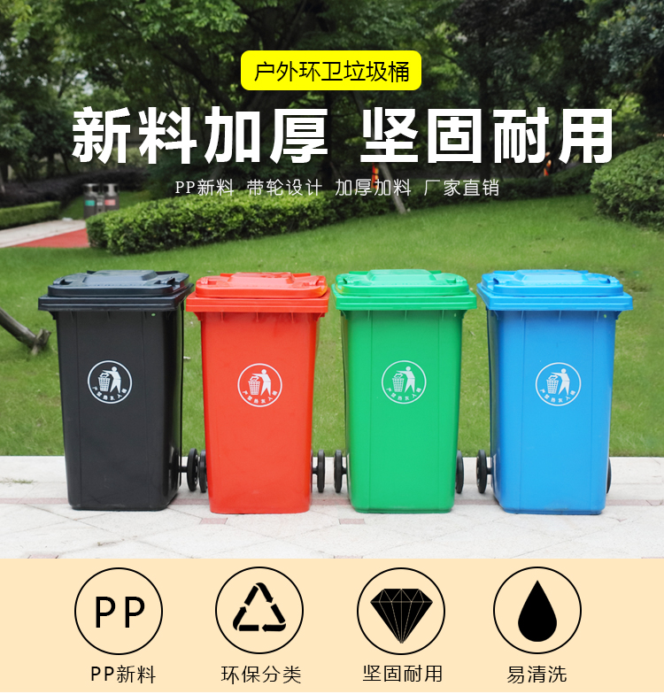 Thùng rác có phân loại Hộp vệ sinh ngoài trời lớn 240L có nắp đậy dùng cho bếp gia đình dung tích chuyên dụng có bánh xe và nắp đậy dùng cho mục đích thương mại