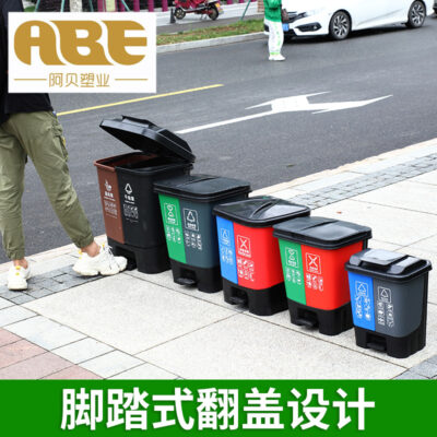 Thùng rác đạp đôi phân loại hộ gia đình thùng rác tách khô và ướt ngoài trời loại bàn đạp đôi bằng nhựa loại lớn có nắp đậy