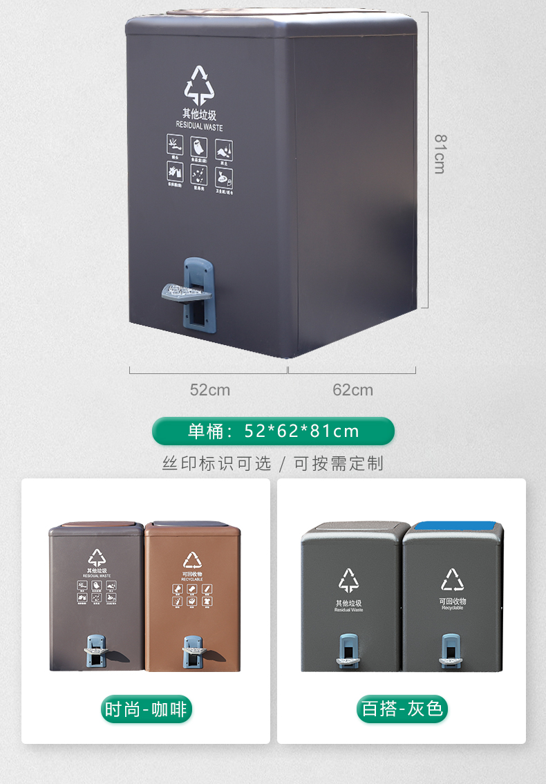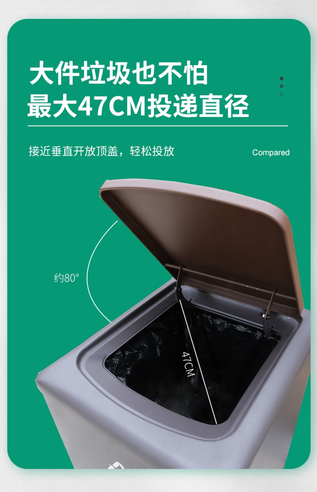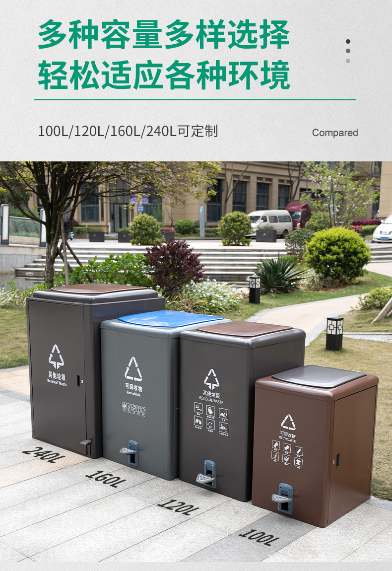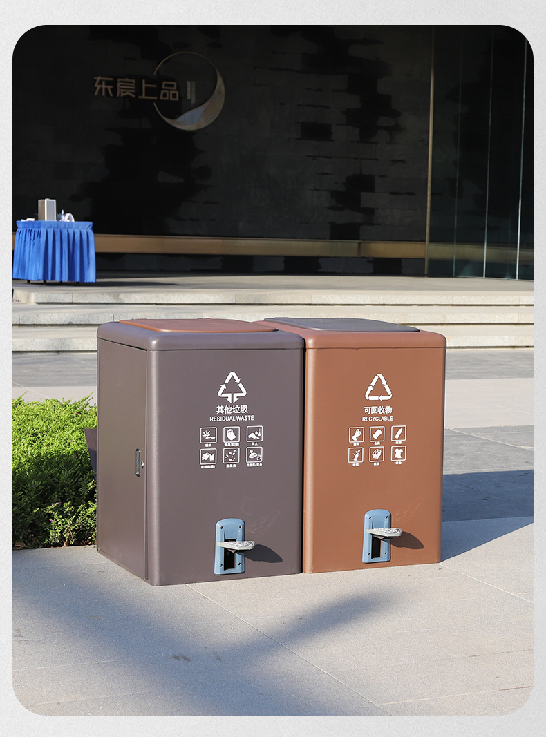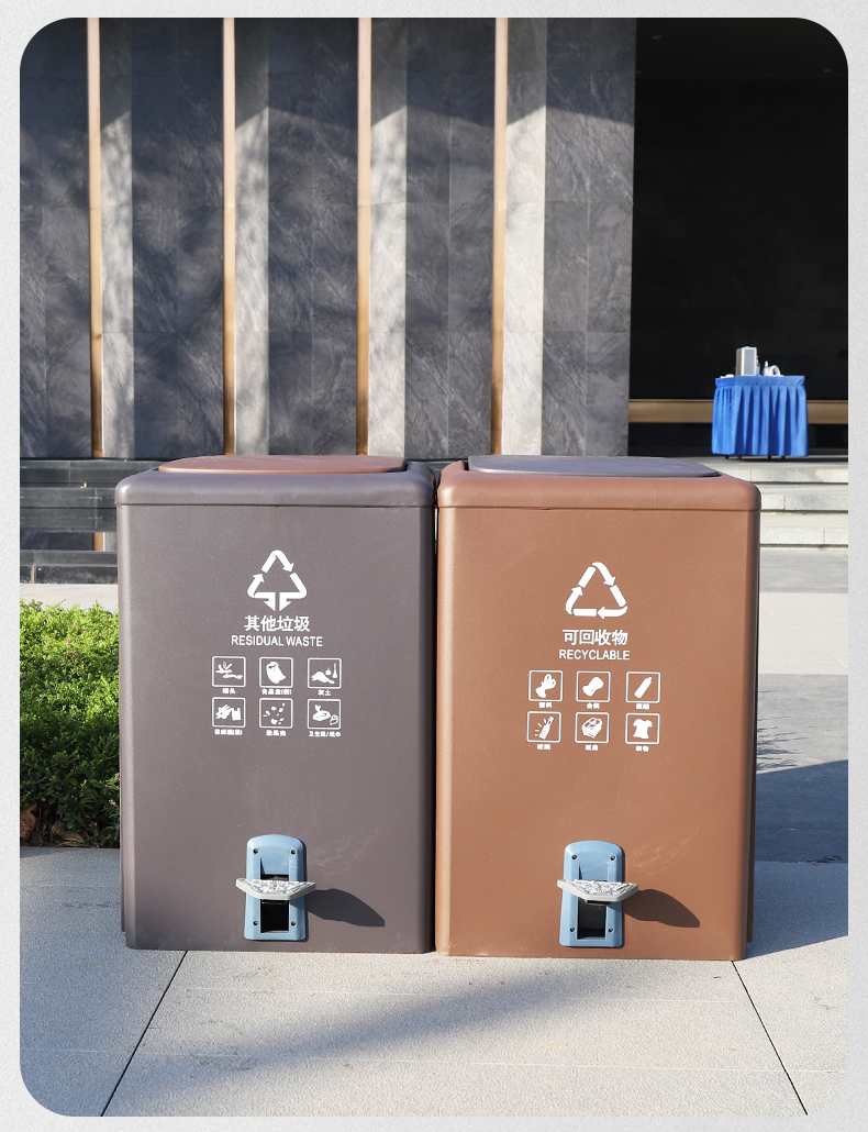 Thùng rác đạp ngoài trời có nắp 160 công suất cực lớn, hộp phân loại vệ sinh cộng đồng, dung tích cực lớn, thương mại 120 lít là lựa chọn lý tưởng cho không gian công cộng, sân vườn hoặc khu đô thị. Sản phẩm giúp nâng cao hình ảnh chuyên nghiệp và sạch đẹp cho môi trường sống.
