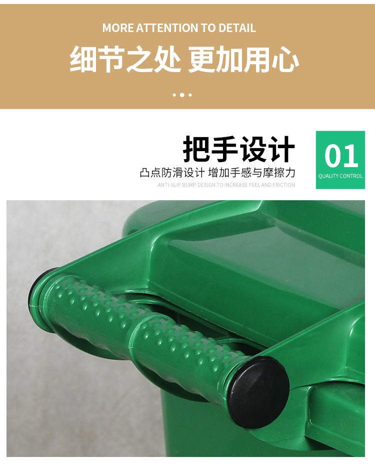 Thùng rác dung tích lớn có bánh xe cho nhà bếp, thùng rác vệ sinh ngoài trời thương mại lớn có nắp, hộp phân loại hộ gia đình là lựa chọn lý tưởng cho không gian công cộng, sân vườn hoặc khu đô thị. Sản phẩm giúp nâng cao hình ảnh chuyên nghiệp và sạch đẹp cho môi trường sống.