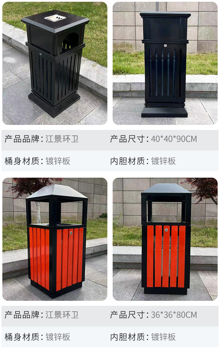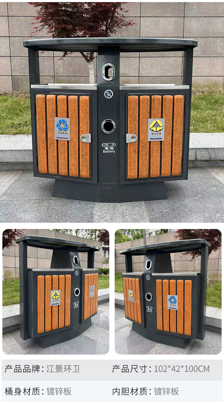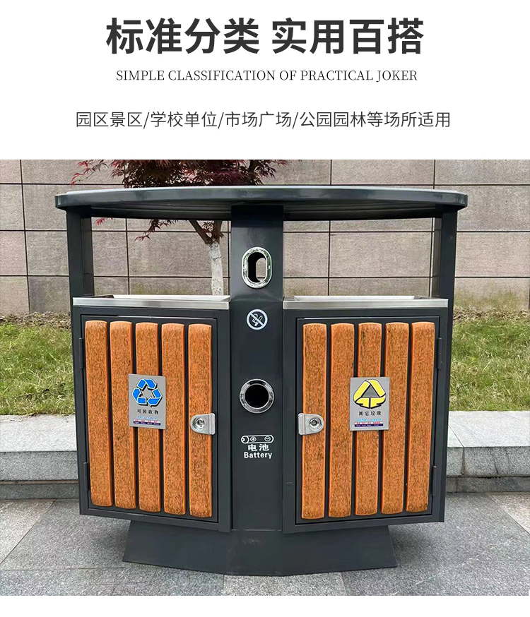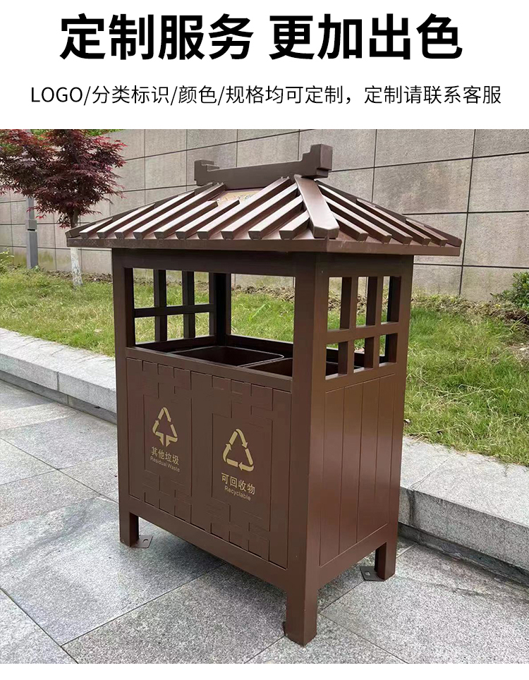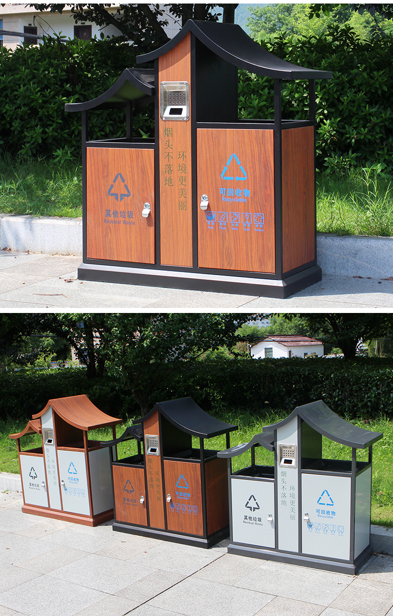 Thùng rác gỗ thép được phân loại theo phong cách Trung Quốc khu công viên ngoài trời phong cách cổ điển cao cấp thùng đôi thùng ngoài trời tùy chỉnh
