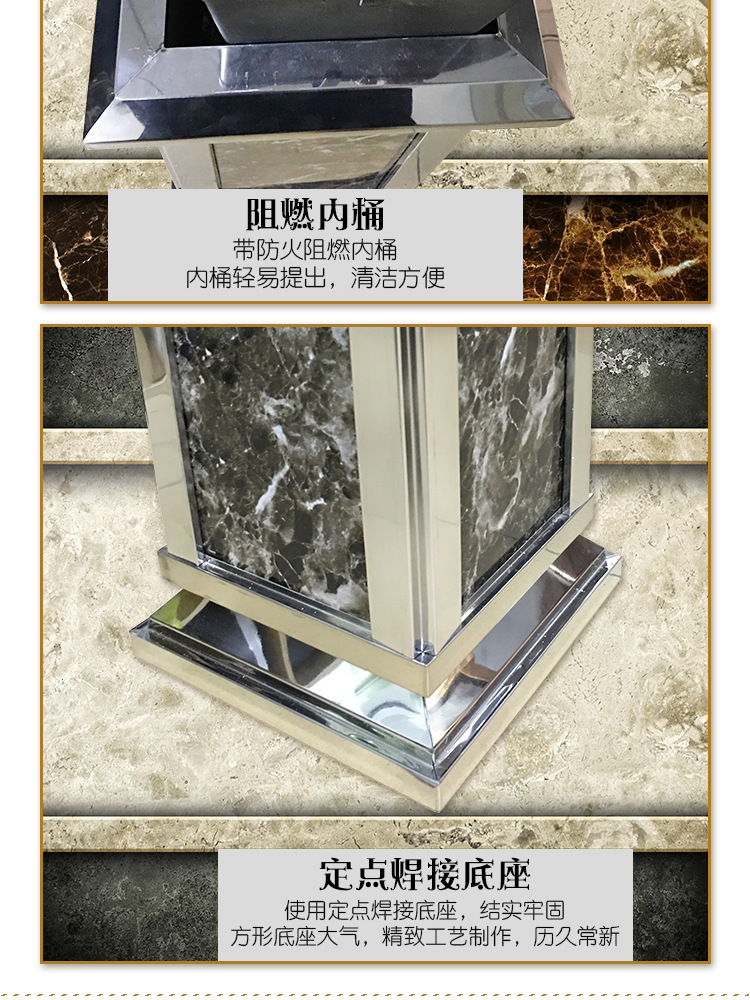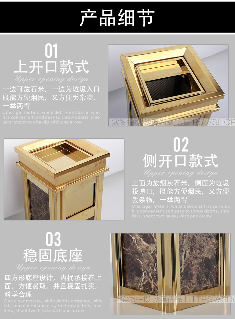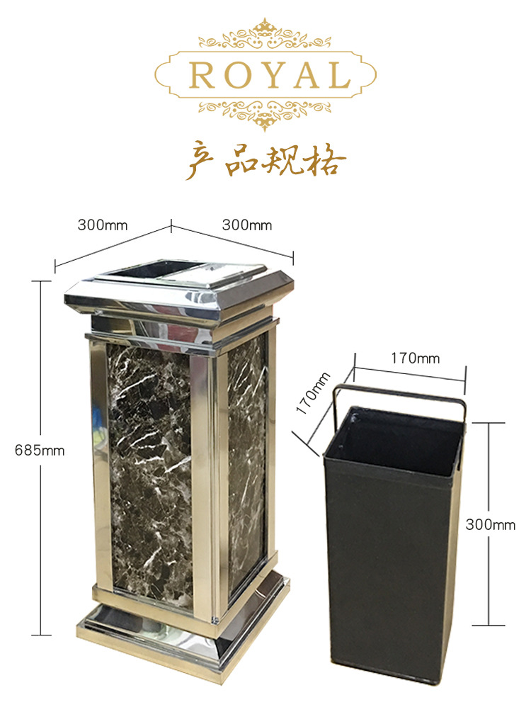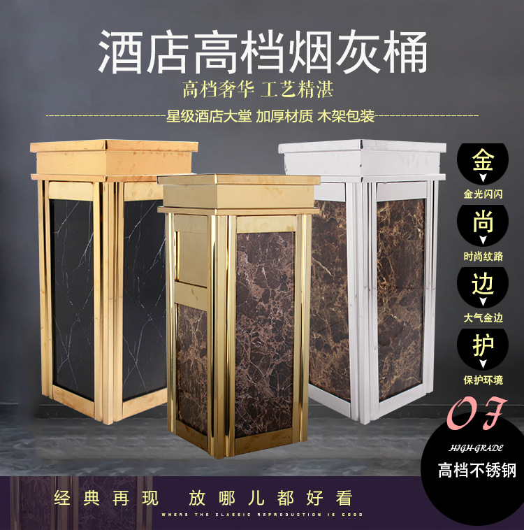 Thùng rác khách sạn có thể đứng dọc với gạt tàn thép không gỉ hành lang khách sạn thương mại KTV hộp bóc miệng