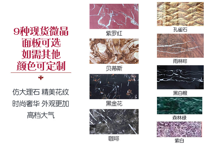 一、本产品采用真正的仿大理石微晶防火板,绝非市场那种低劣的贴纸面板,