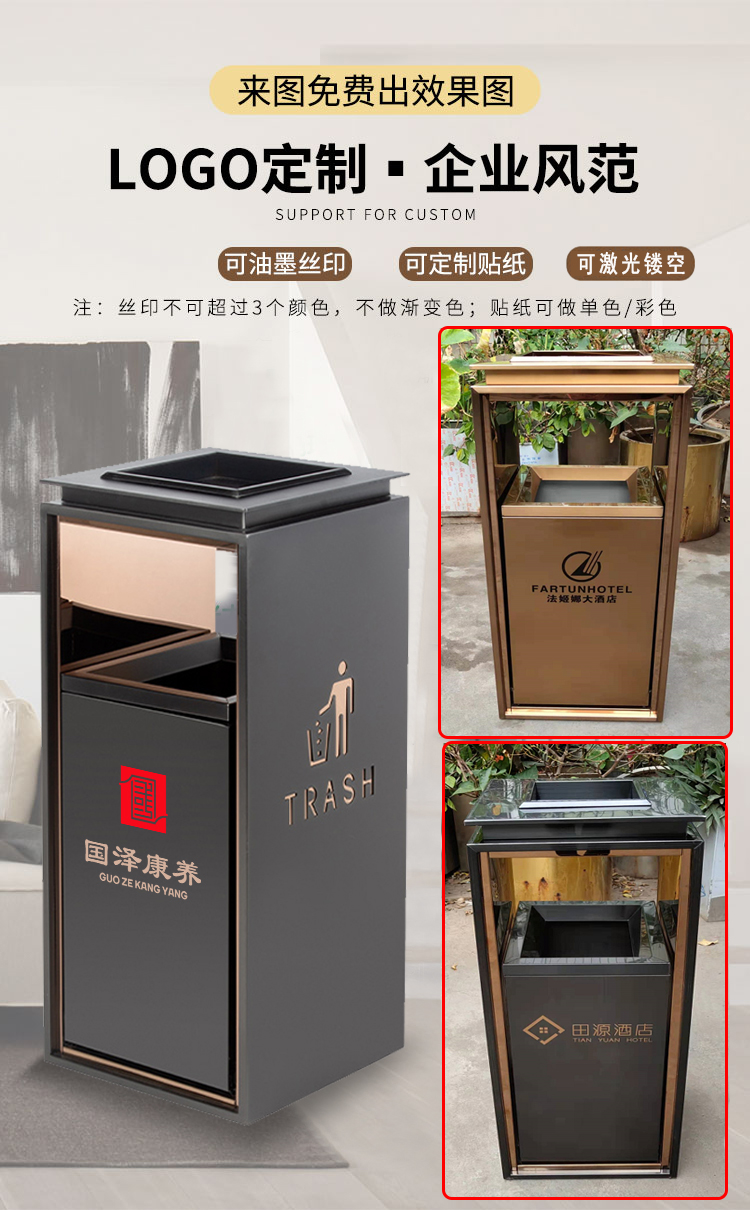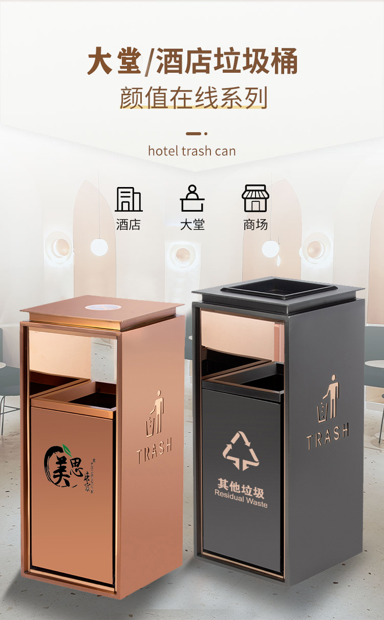 Sản phẩm nổi bật với các đặc điểm: Thùng rác khách sạn thùng rác sảnh thang máy lối vào trung tâm mua sắm thẳng đứng với sảnh bán hàng bằng thép không gỉ phân loại ngoài trời hộp vỏ trái cây