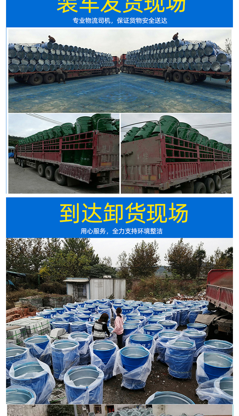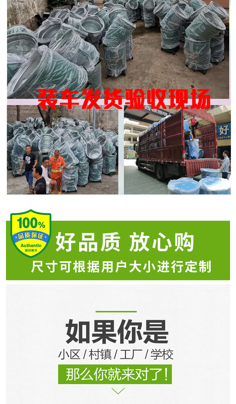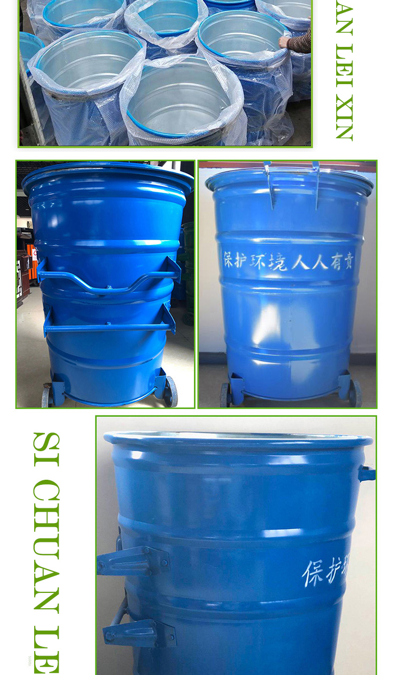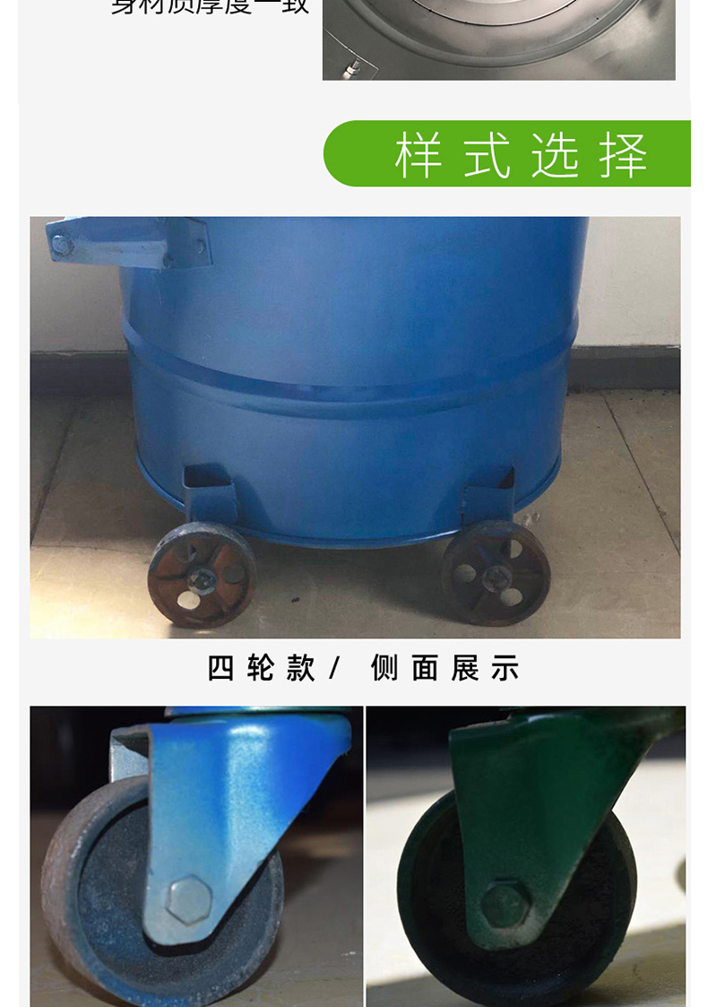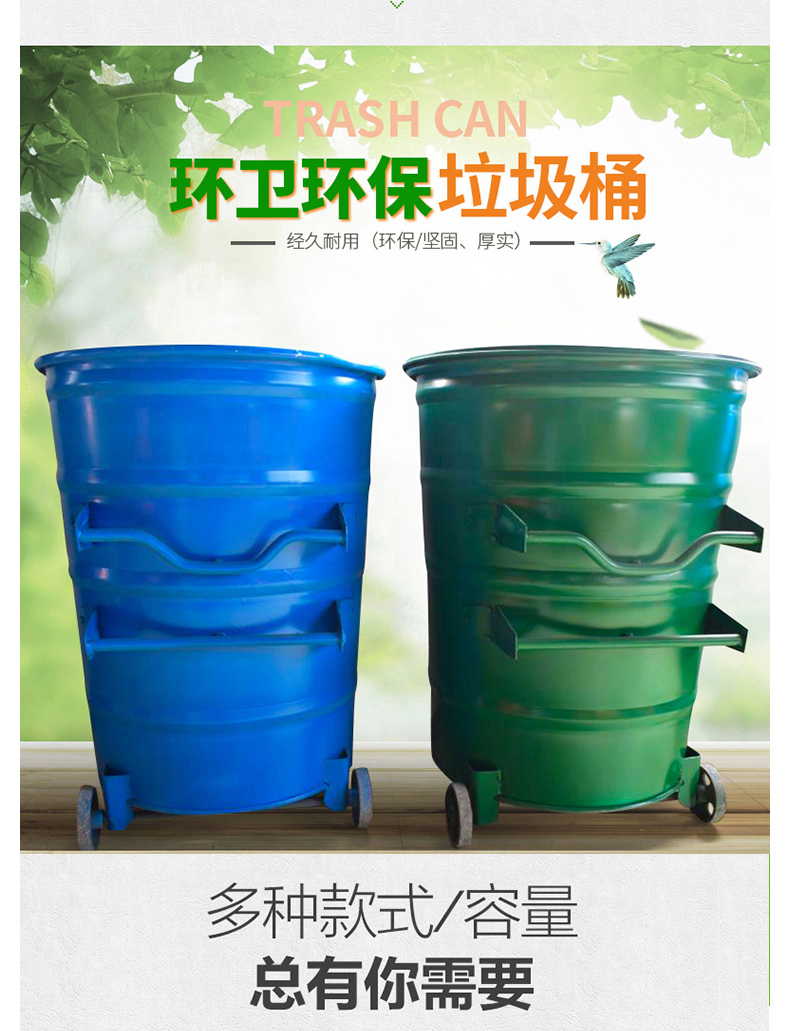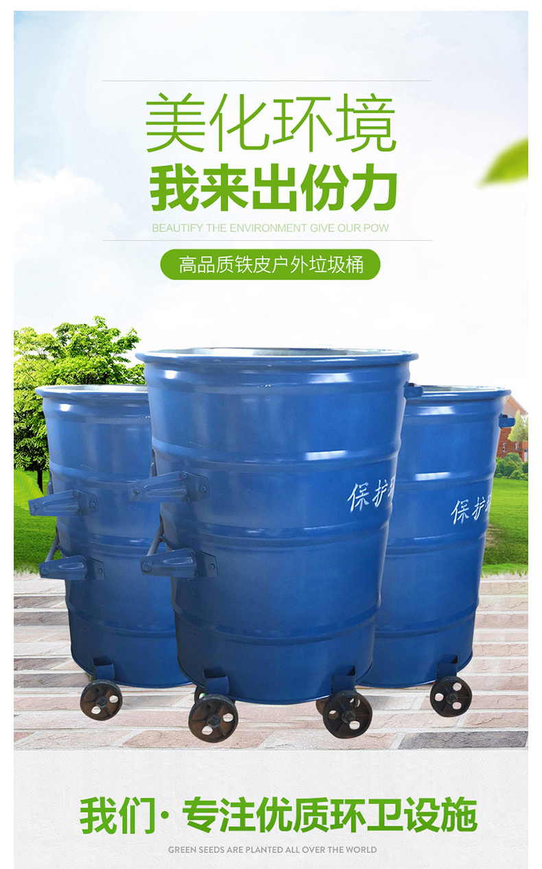 Thùng rác kim loại lớn 360L có nắp đậy dày vệ sinh ngoài trời trailer Nhà sản xuất xô sắt thương mại tròn thành phố