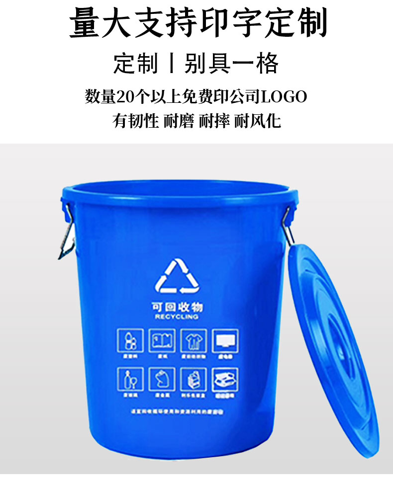 Thùng rác lớn dày nhà máy phân loại vệ sinh ngoài trời xô nhựa thương mại hộ gia đình nhà bếp tròn xô với nắp xô