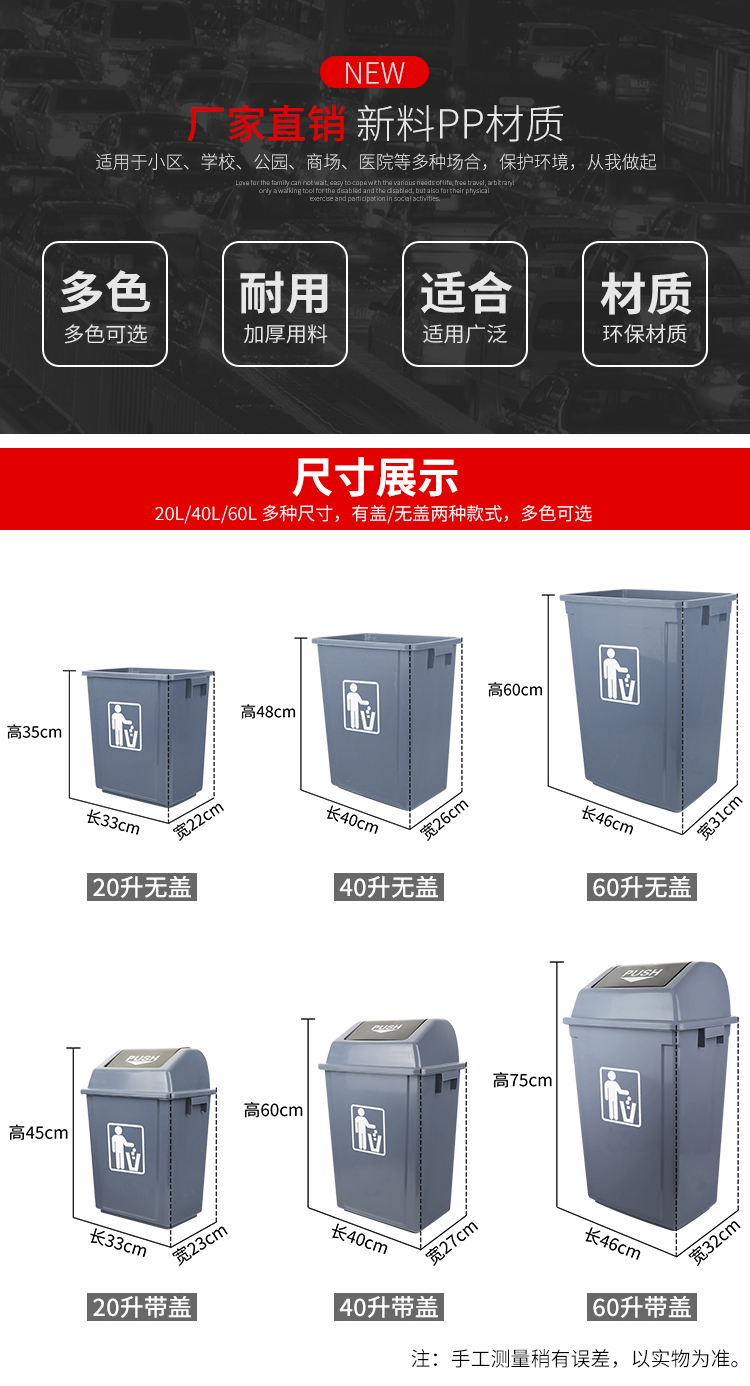 Thùng rác lớn không nắp ngoài trời phân loại trường công nghiệp dày văn phòng hộ gia đình thùng rác nhựa nhỏ là lựa chọn lý tưởng cho không gian công cộng, sân vườn hoặc khu đô thị. Sản phẩm giúp nâng cao hình ảnh chuyên nghiệp và sạch đẹp cho môi trường sống.