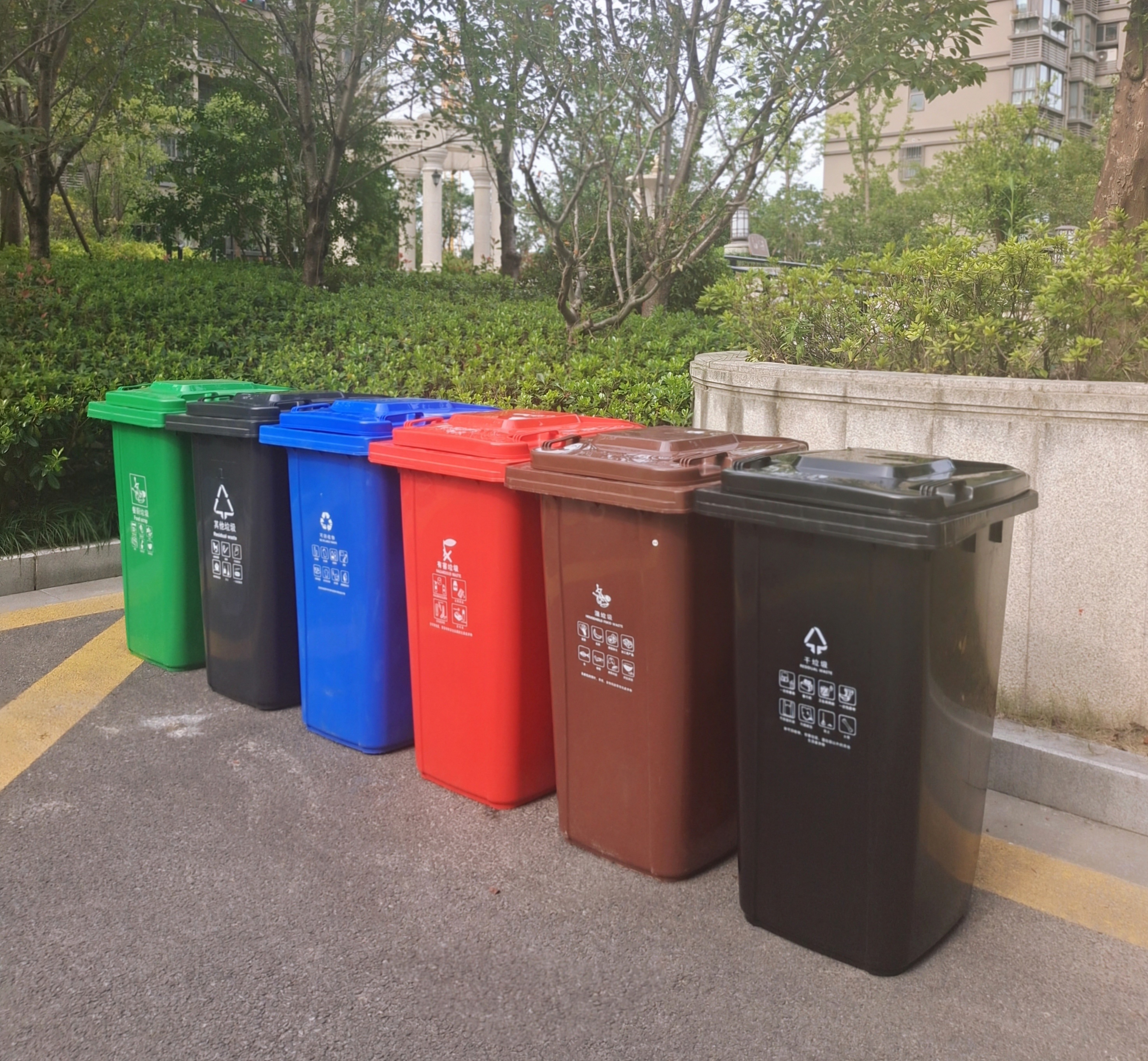 Thùng rác lớn ngoài trời Thùng rác 240 lít Thùng vệ sinh 120L thương mại phân loại khô và ướt tài sản cộng đồng ngoài trời có nắp hộp là lựa chọn lý tưởng cho không gian công cộng, sân vườn hoặc khu đô thị. Sản phẩm giúp nâng cao hình ảnh chuyên nghiệp và sạch đẹp cho môi trường sống.
