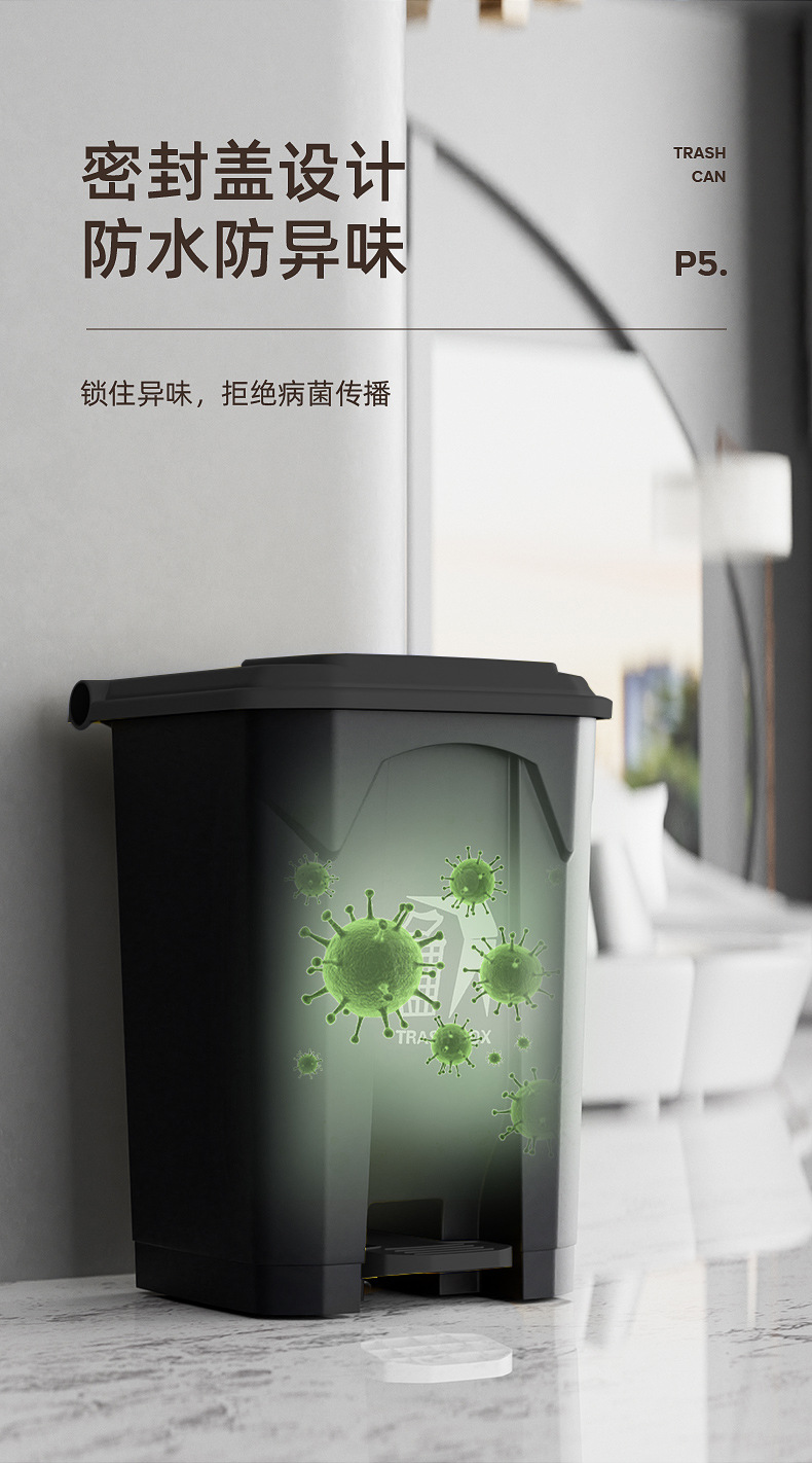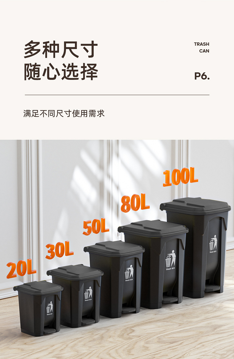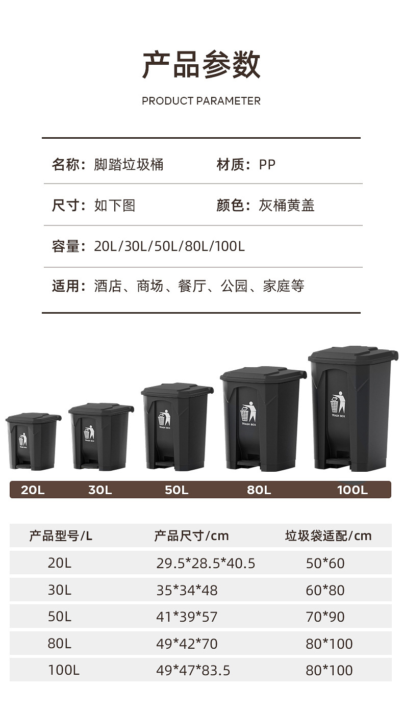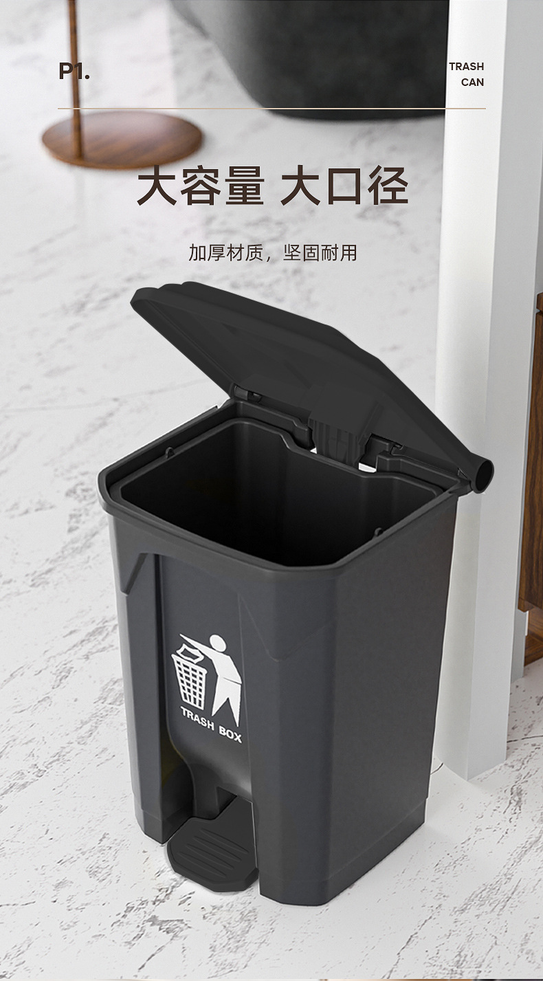Thùng rác lớn vận hành bằng chân màu xám dày thương mại có nắp ngoài trời nhà bếp gia dụng công suất lớn lật bằng chân yoyo là lựa chọn lý tưởng cho không gian công cộng, sân vườn hoặc khu đô thị. Sản phẩm giúp nâng cao hình ảnh chuyên nghiệp và sạch đẹp cho môi trường sống.