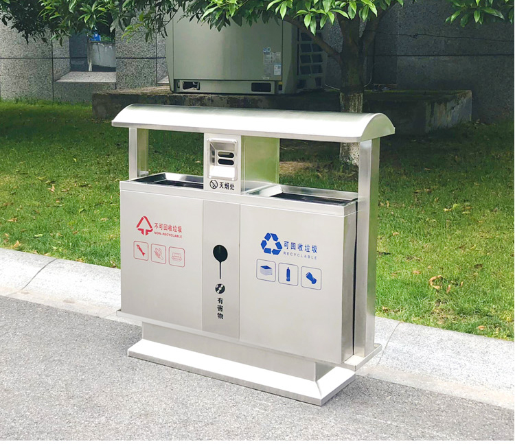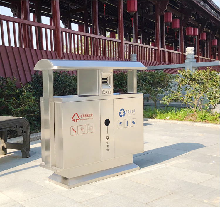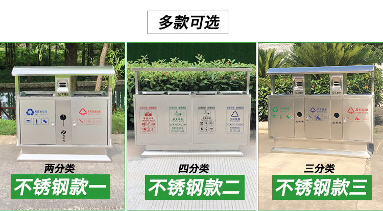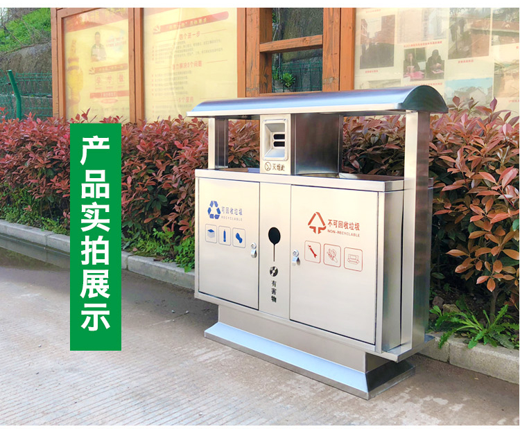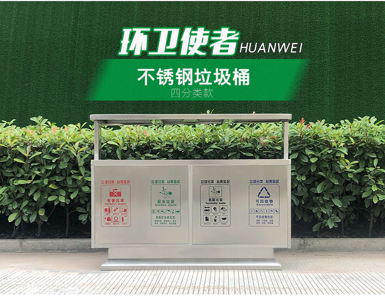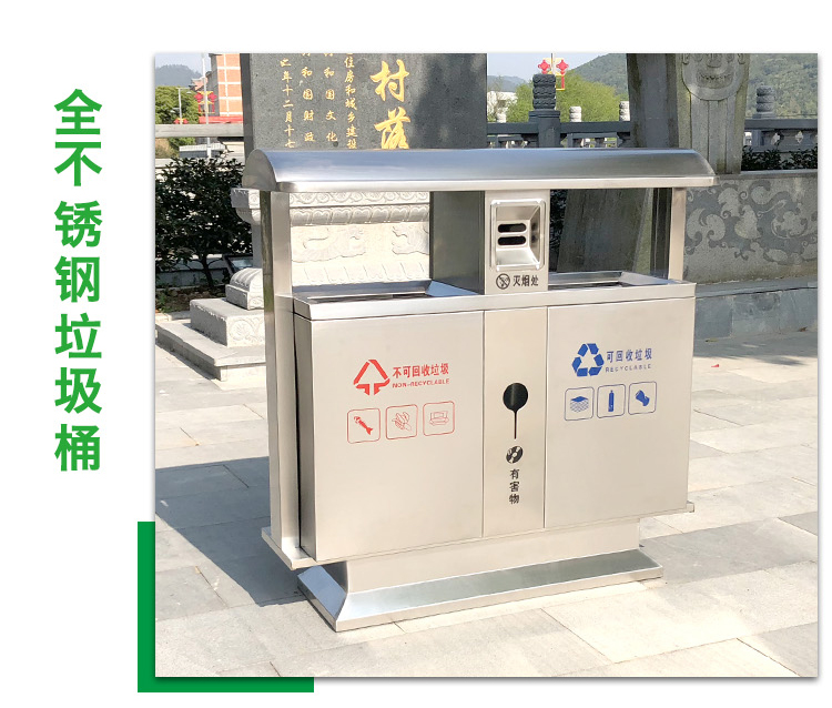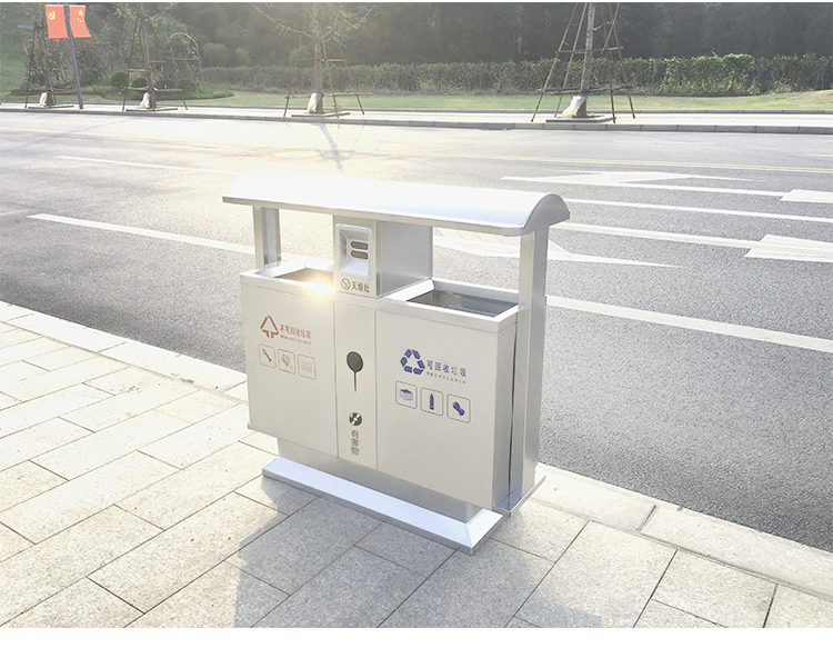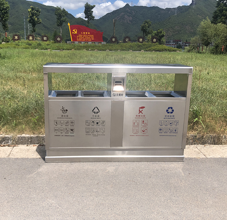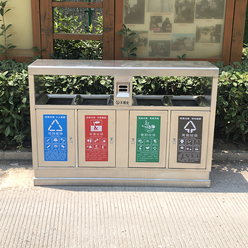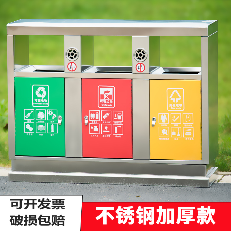 Thùng rác ngoài trời bằng thép không gỉ 304 cộng đồng bảo vệ môi trường thùng đôi ba hoặc bốn hộp phân loại thùng rác vệ sinh thùng rác lớn