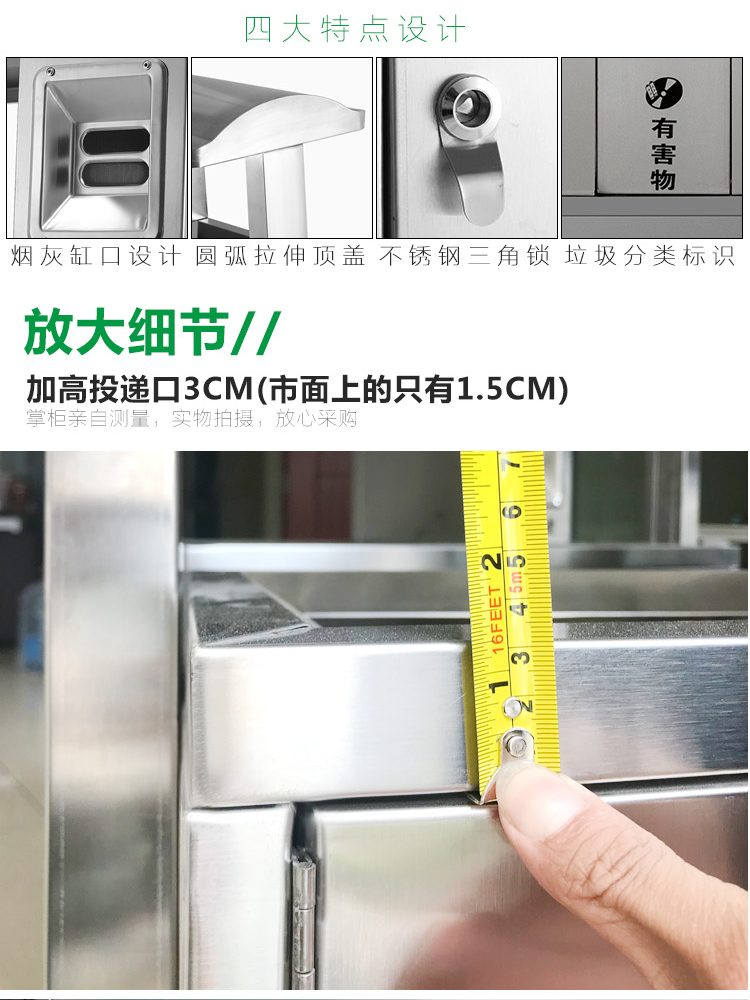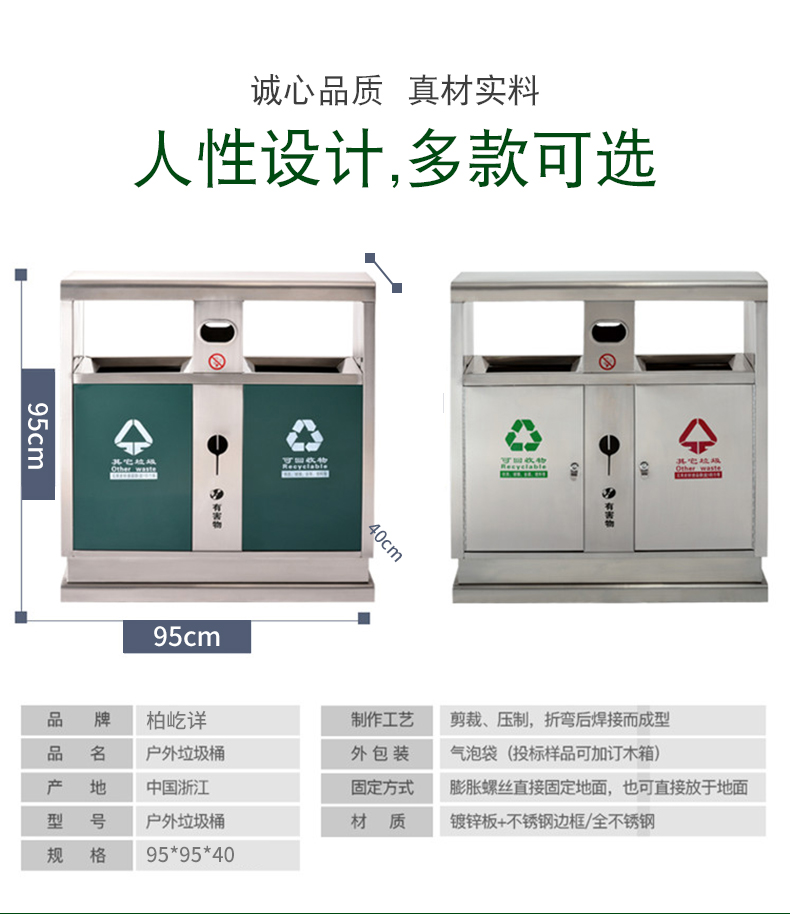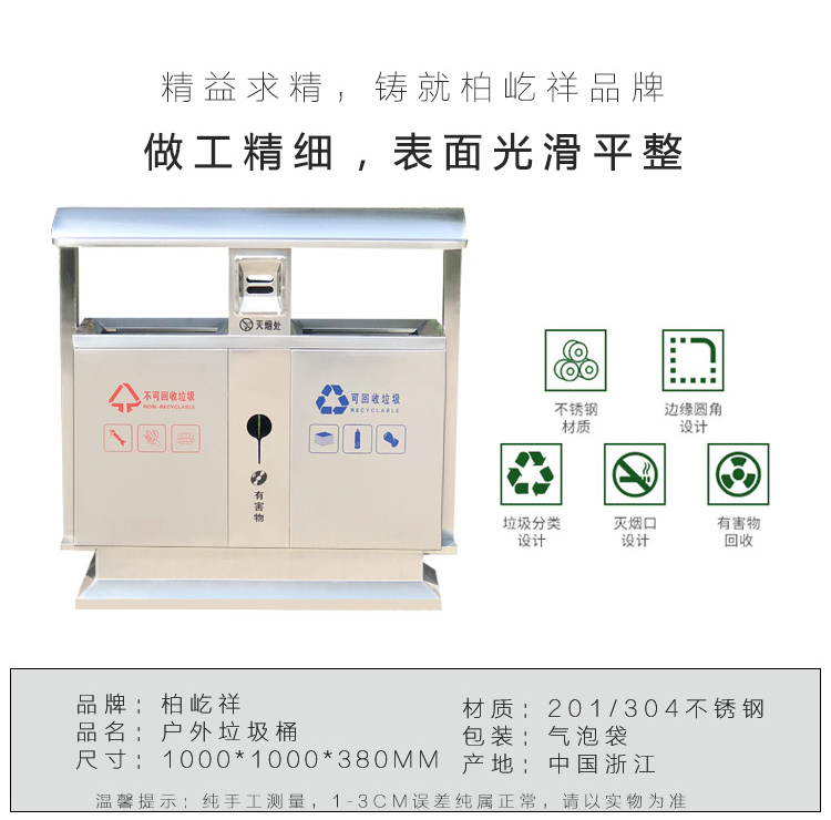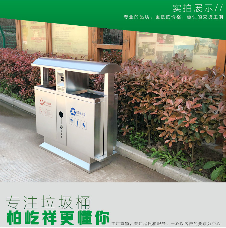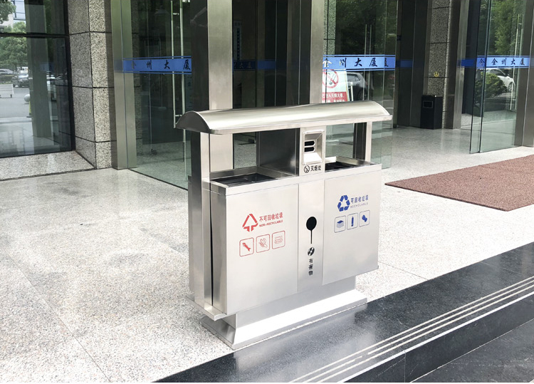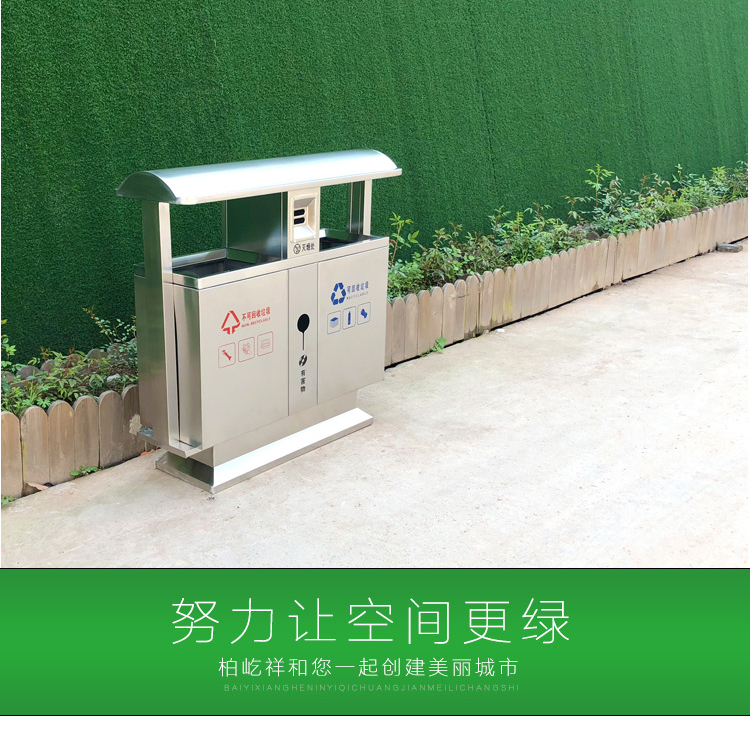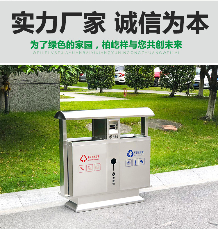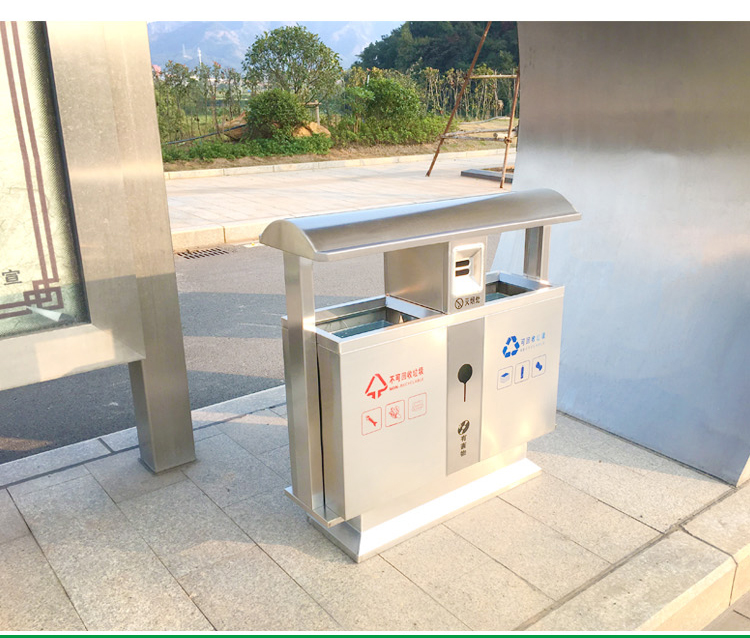 Thùng rác ngoài trời bằng thép không gỉ 304 cộng đồng bảo vệ môi trường thùng đôi ba hoặc bốn hộp phân loại thùng rác vệ sinh thùng rác lớn