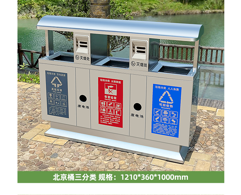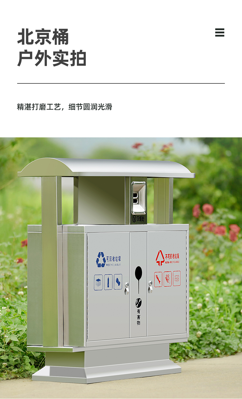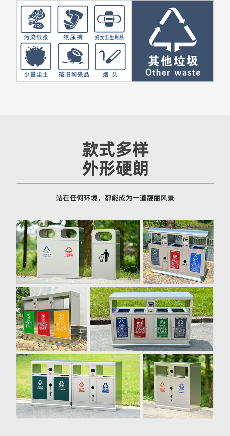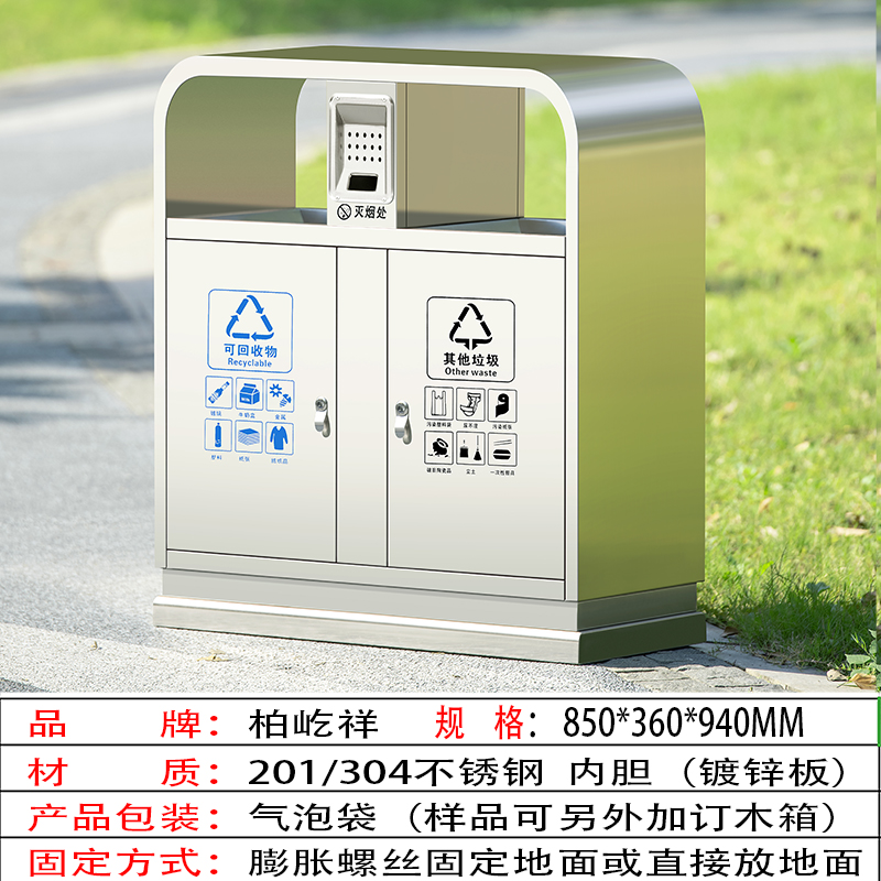 Sản phẩm nổi bật với các đặc điểm: Thùng rác ngoài trời bằng thép không gỉ 304 thùng rác hộp lớn phân loại tài sản cộng đồng ngoài trời vệ sinh công cộng bảo vệ môi trường xô