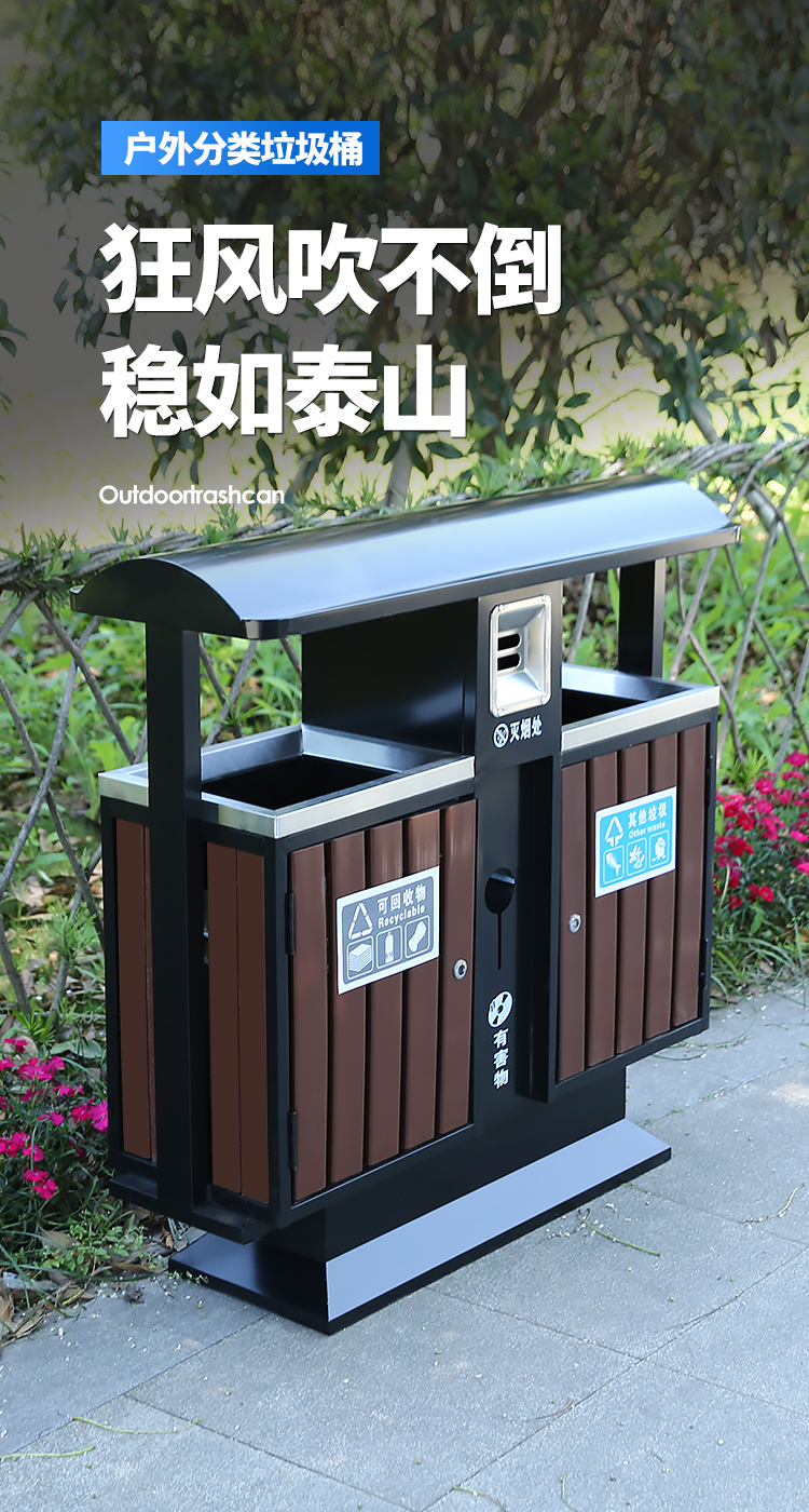 Thùng rác ngoài trời bằng thép không gỉ hộp lớn khung cảnh đẹp hộp vỏ ngoài trời vệ sinh môi trường cộng đồng bốn loại thùng rác