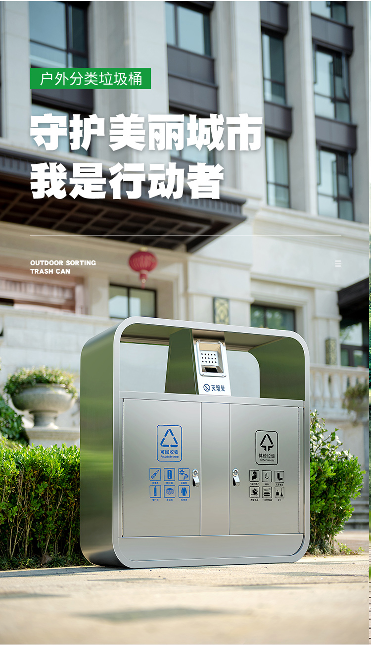 Thùng rác ngoài trời bằng thép không gỉ phân loại lớn vệ sinh hộp da trái cây tài sản ngoài trời cộng đồng bảo vệ môi trường đường phố Thùng rác là lựa chọn lý tưởng cho không gian công cộng, sân vườn hoặc khu đô thị. Sản phẩm giúp nâng cao hình ảnh chuyên nghiệp và sạch đẹp cho môi trường sống.