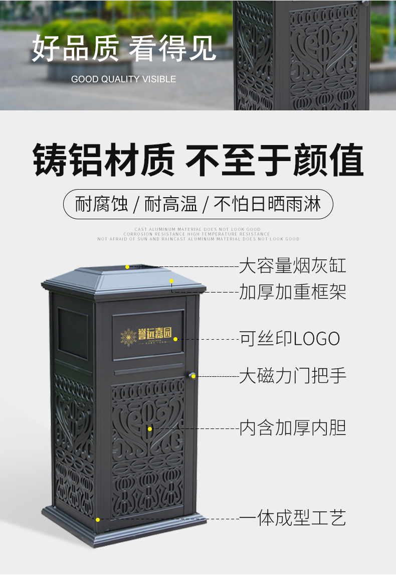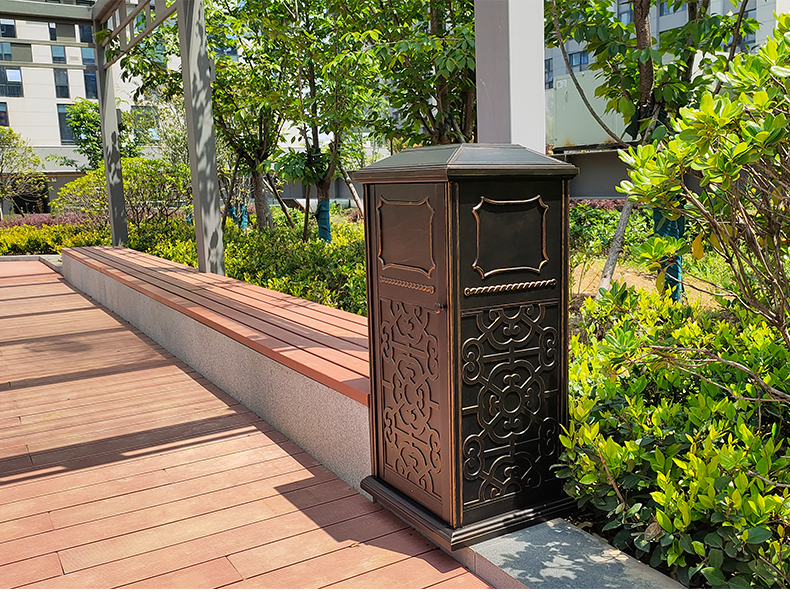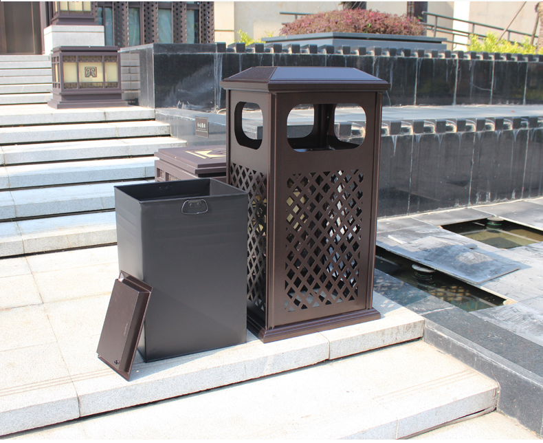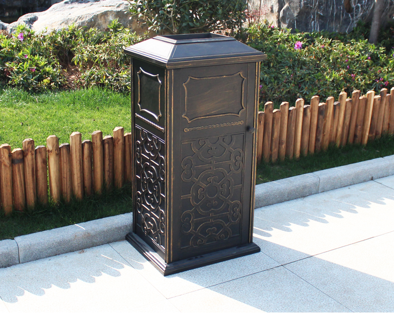 Thùng rác ngoài trời biệt thự sân vườn nhà sân ngoài trời công viên bộ phận bán hàng trái cây hộp da nhôm đúc retro
