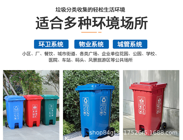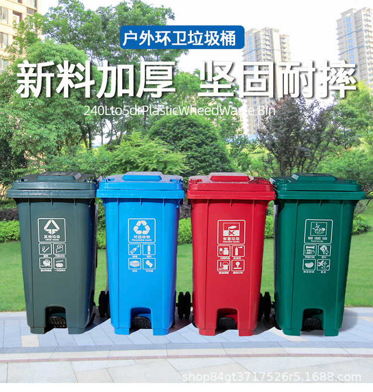 Thùng rác ngoài trời có bàn đạp 240L thùng rác nhựa dung tích lớn vệ sinh phân loại dày xe kéo thùng rác thương mại là lựa chọn lý tưởng cho không gian công cộng, sân vườn hoặc khu đô thị. Sản phẩm giúp nâng cao hình ảnh chuyên nghiệp và sạch đẹp cho môi trường sống.