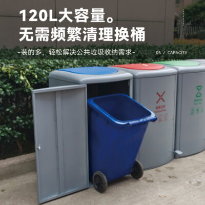 Thùng rác ngoài trời đạp chân 120 lít có nắp, ba loại, bốn loại, thùng rác ngoài trời lớn kết hợp