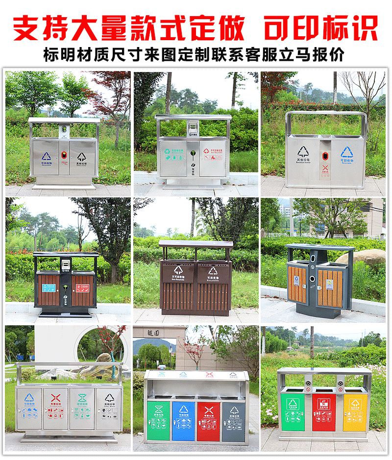 Thùng rác ngoài trời, hộp vỏ inox, thùng rác phân loại, hộp vỏ trái cây ngoài trời, nhà sản xuất thùng rác vệ sinh bằng thép và gỗ