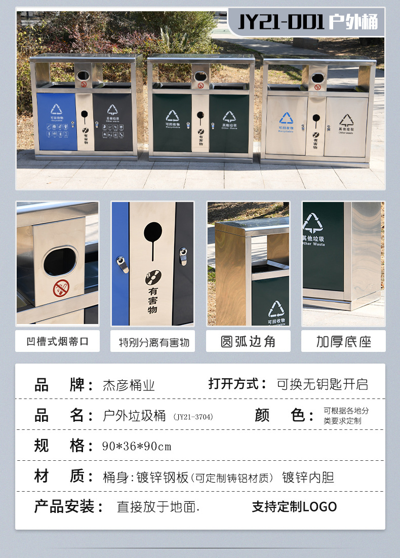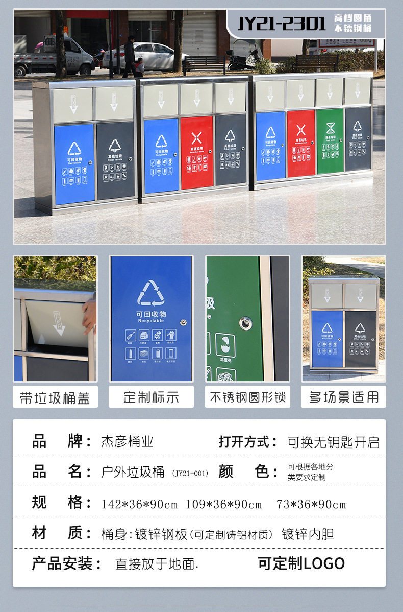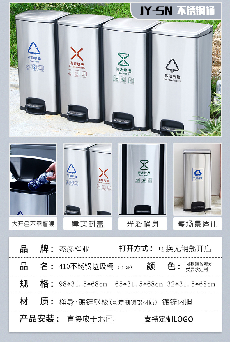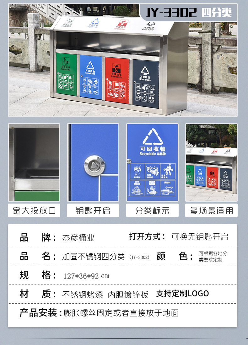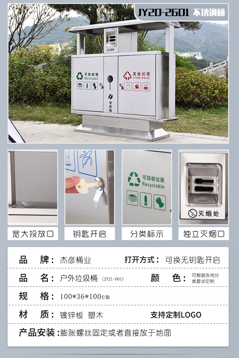 Thùng rác ngoài trời, hộp vỏ inox vệ sinh lớn, khu danh lam thắng cảnh công viên ngoài trời thùng rác phân loại đường phố cộng đồng là lựa chọn lý tưởng cho không gian công cộng, sân vườn hoặc khu đô thị. Sản phẩm giúp nâng cao hình ảnh chuyên nghiệp và sạch đẹp cho môi trường sống.