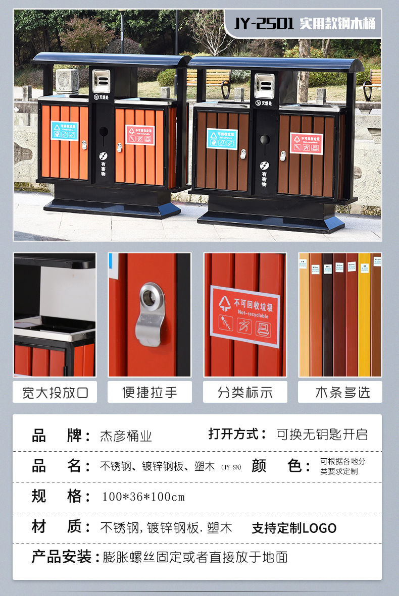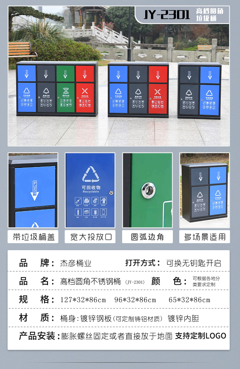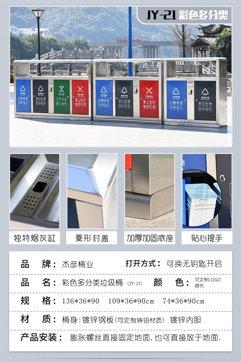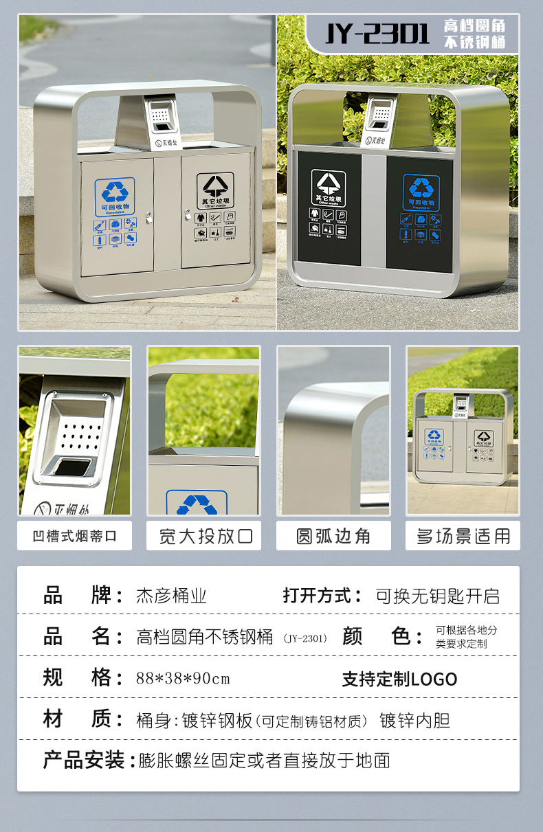 Thùng rác ngoài trời, hộp vỏ inox vệ sinh lớn, khu danh lam thắng cảnh công viên ngoài trời thùng rác phân loại đường phố cộng đồng là lựa chọn lý tưởng cho không gian công cộng, sân vườn hoặc khu đô thị. Sản phẩm giúp nâng cao hình ảnh chuyên nghiệp và sạch đẹp cho môi trường sống.