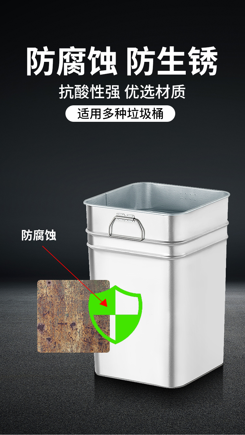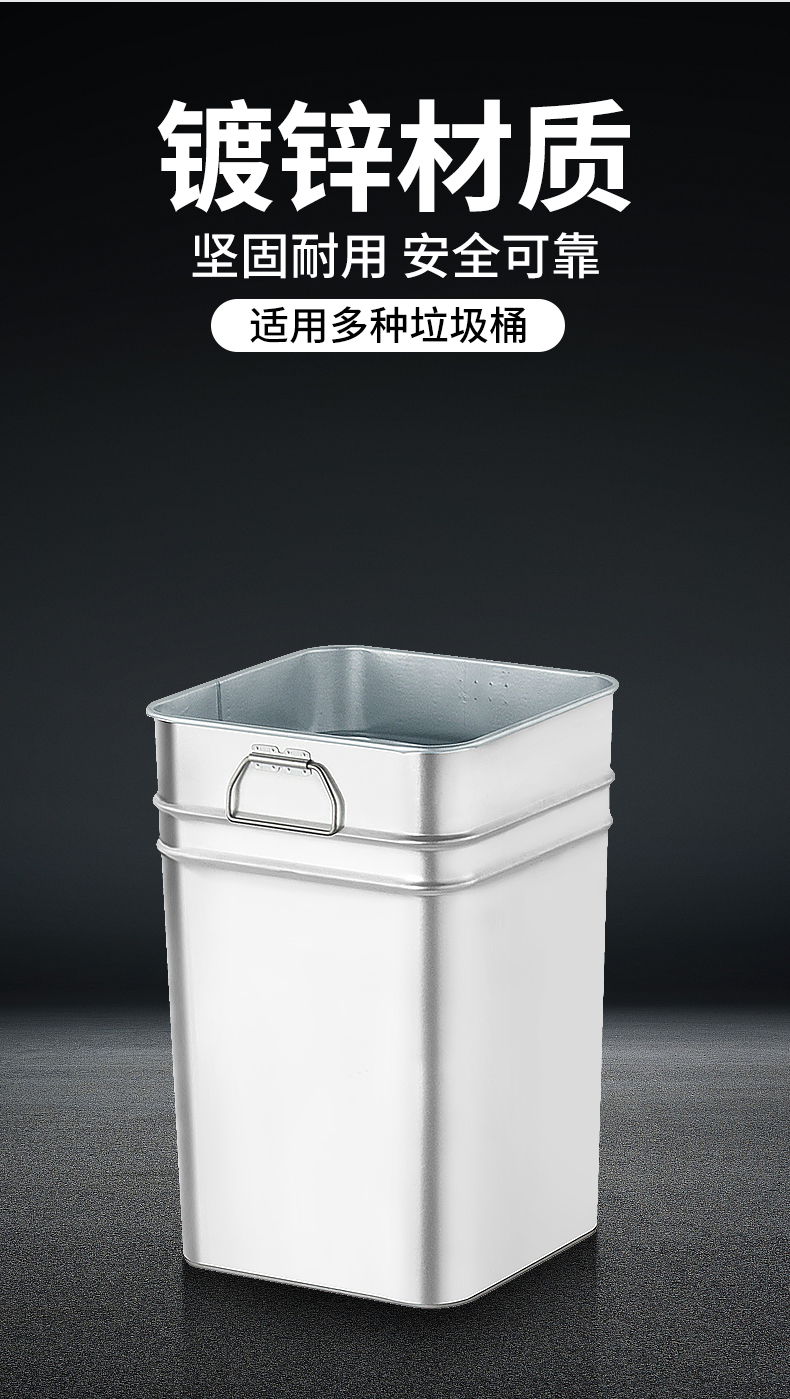 Thùng rác ngoài trời lót, hộp bóc, tôn inox, thùng trong mạ kẽm, thùng sắt vuông là lựa chọn lý tưởng cho không gian công cộng, sân vườn hoặc khu đô thị. Sản phẩm giúp nâng cao hình ảnh chuyên nghiệp và sạch đẹp cho môi trường sống.