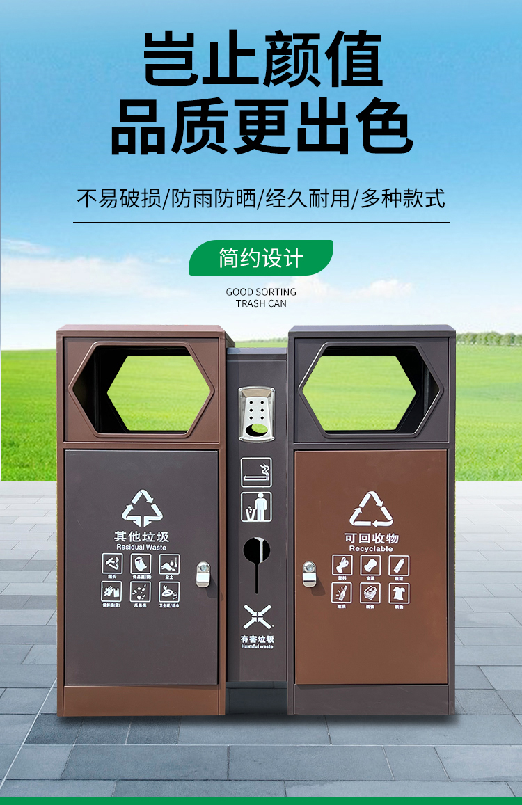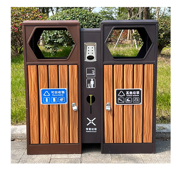 Sản phẩm nổi bật với các đặc điểm: Thùng rác ngoài trời tấm mạ kẽm đa phân loại thùng rác inox hộp đựng đồ công viên lớn hộp vệ sinh cộng đồng cao cấp
