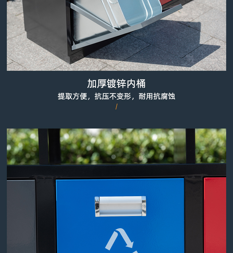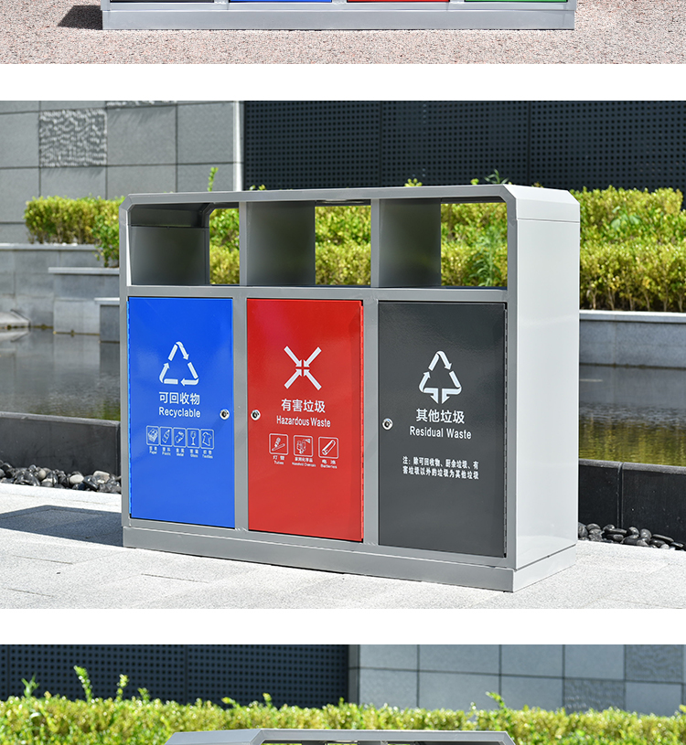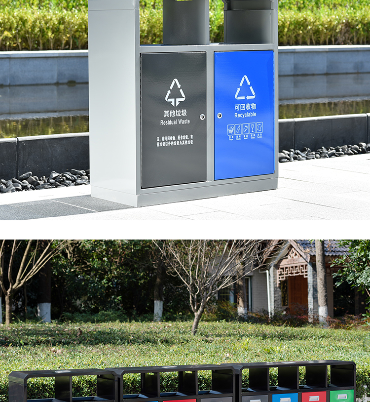Thùng rác ngoài trời thép gỗ ngoài trời hộp thép không gỉ vỏ hộp phong cảnh công viên tài sản phân loại vệ sinh thùng rác lớn