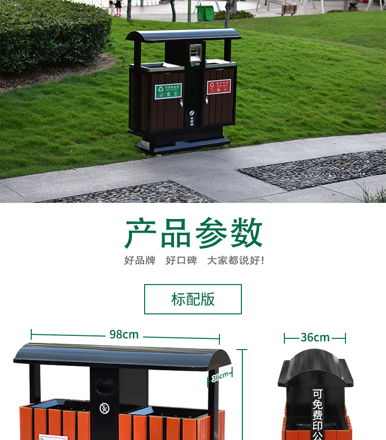 Thùng rác ngoài trời thép không gỉ phân loại vệ sinh hộp da trái cây thương mại ngoài trời công viên cộng đồng danh lam thắng cảnh thùng rác lớn
