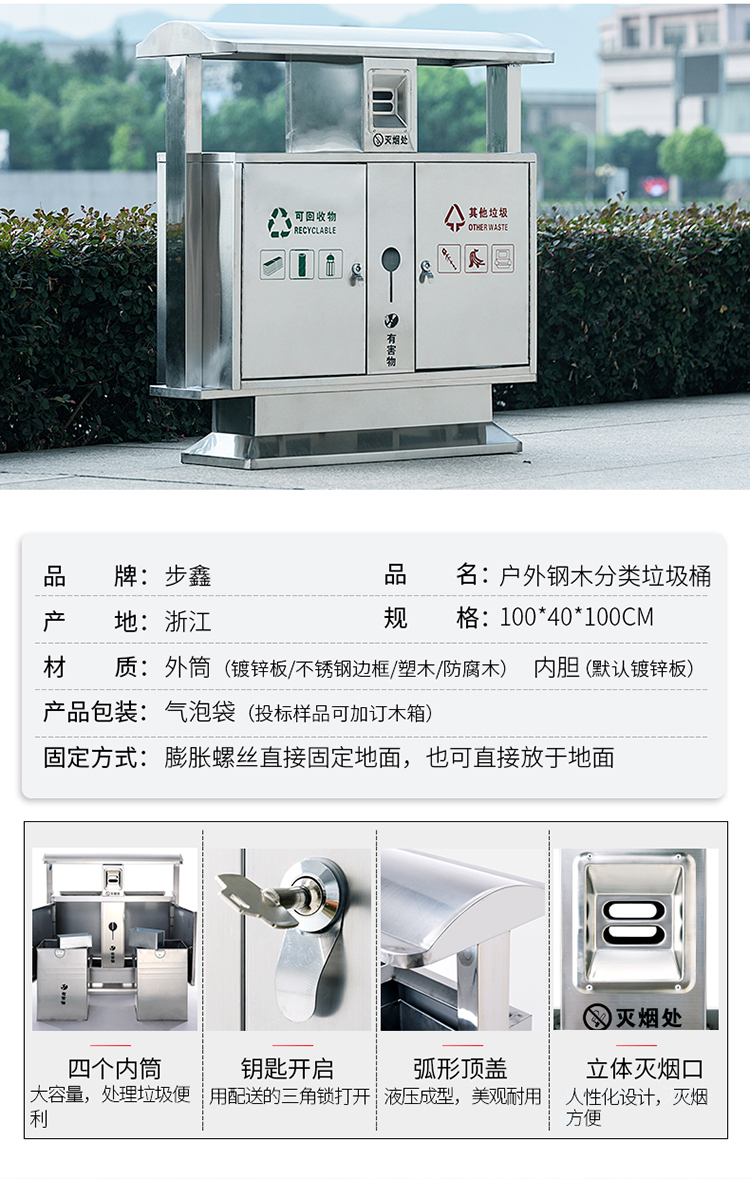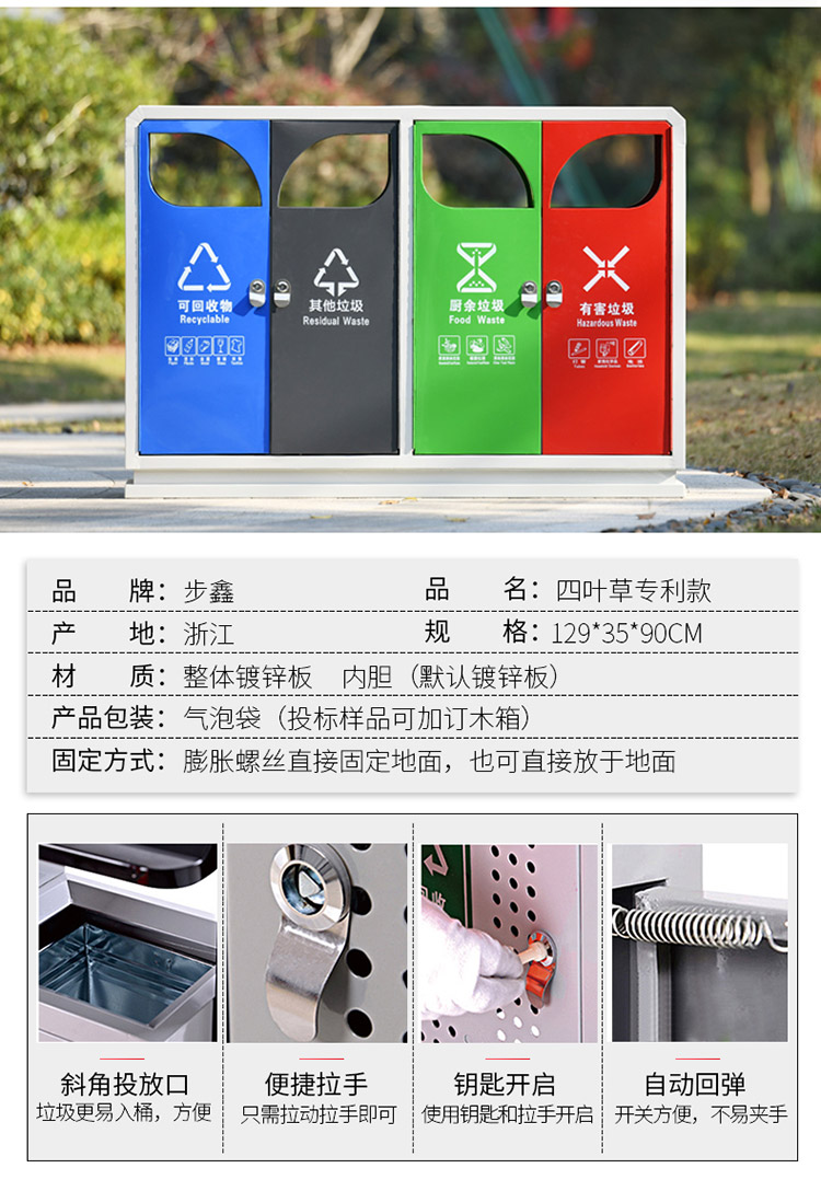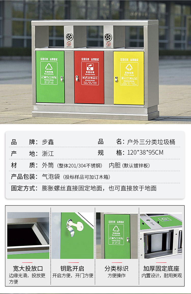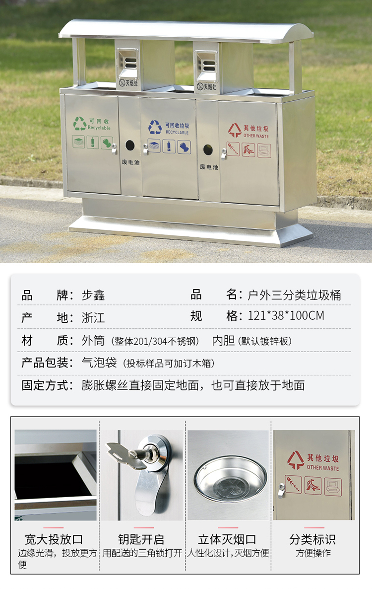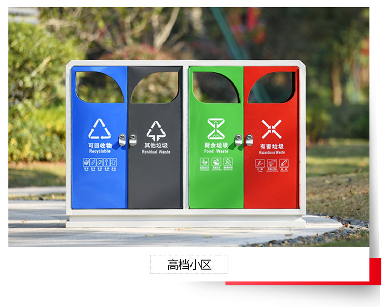Thùng rác ngoài trời thùng rác bằng thép không gỉ lớn vệ sinh hộp vỏ hộp công viên cộng đồng thành phố ngoài trời ba hoặc bốn thùng rác phân loại