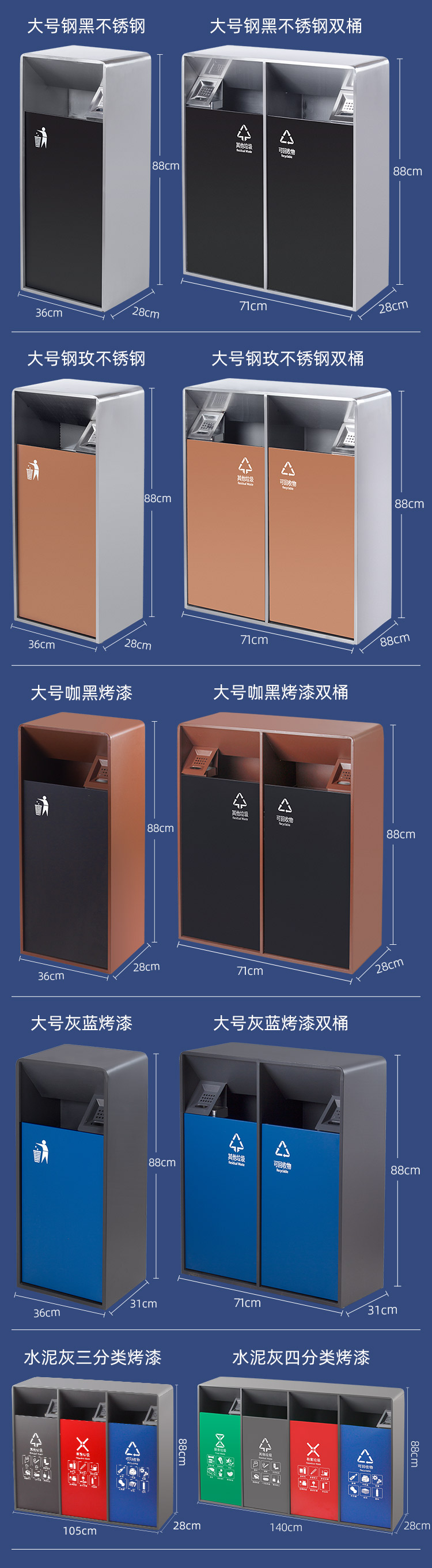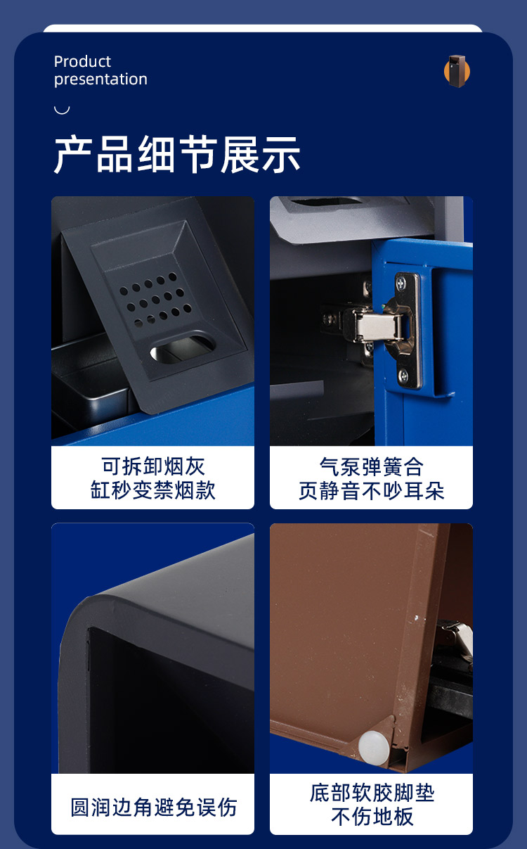 Thùng rác ngoài trời thùng rác bằng thép không gỉ sảnh khách sạn dọc thương mại với hộp da gạt tàn tùy chỉnh phân loại thùng đựng tro