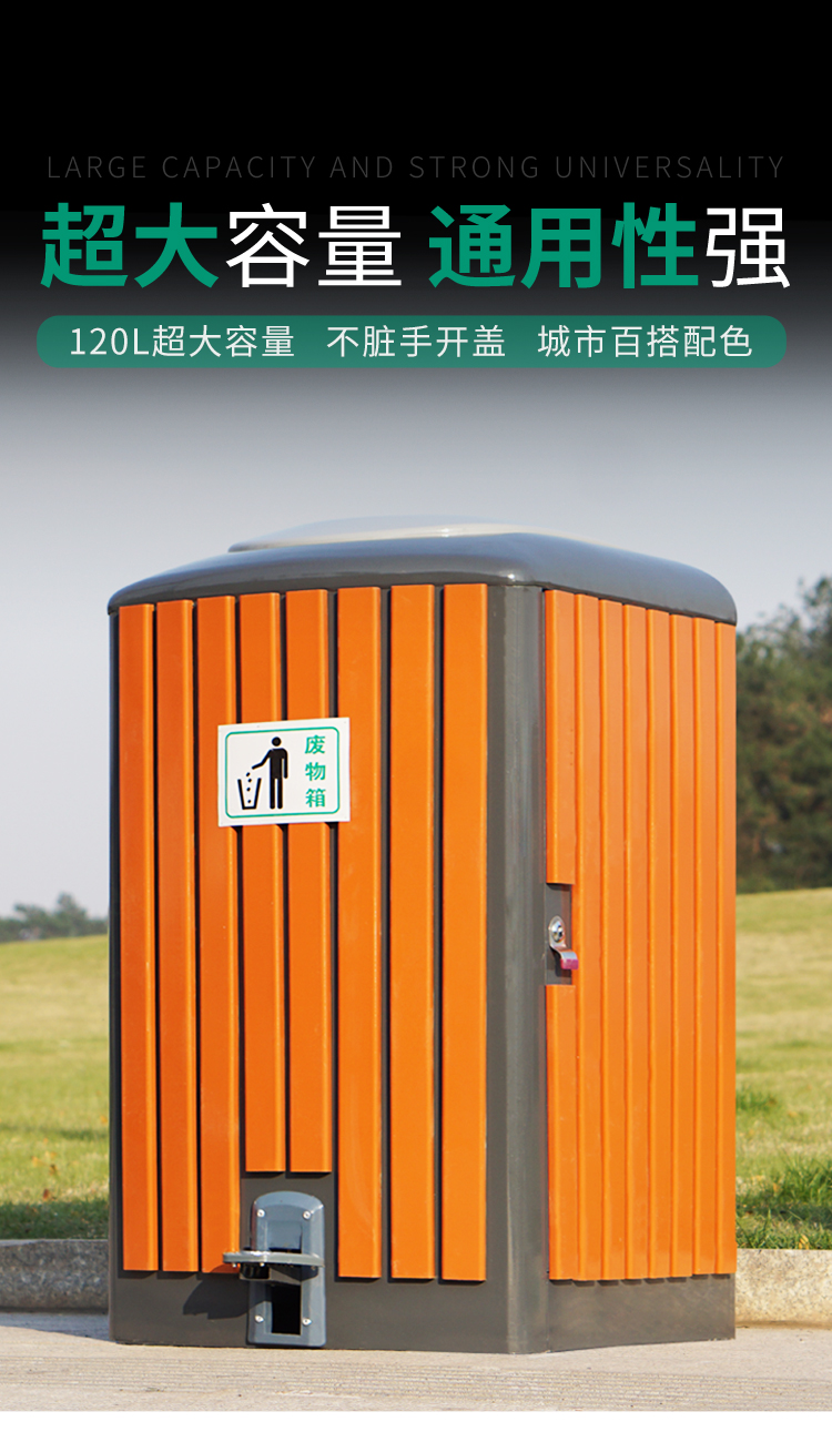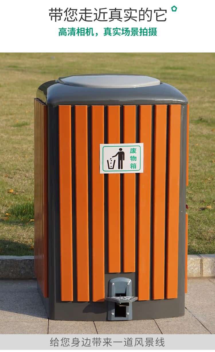 Thùng rác ngoài trời thùng rác có đạp hoạt động bằng bàn đạp sở hữu cộng đồng 120L thùng rác nhựa thép vân gỗ cỡ lớn thương mại có nắp đậy