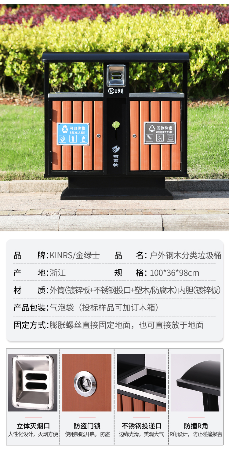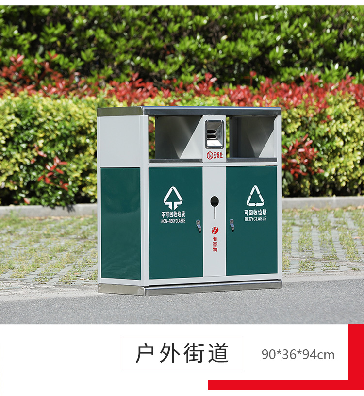 Sản phẩm nổi bật với các đặc điểm: Thùng rác ngoài trời thùng rác lớn vệ sinh ngoài trời phân loại thép không gỉ đôi trái cây hộp da công viên cảnh quan thùng rác thương mại