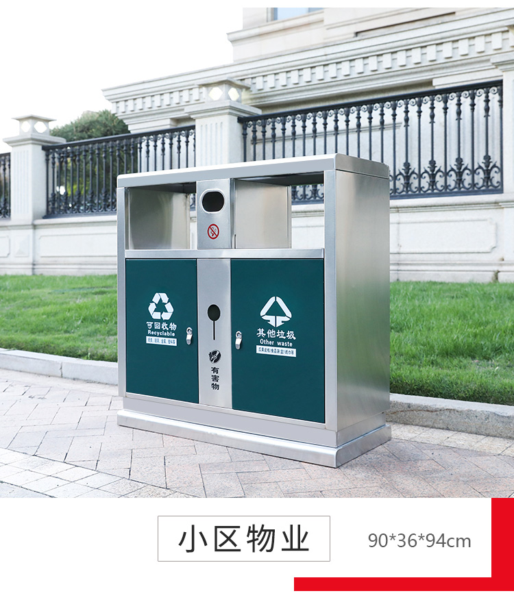 Thùng rác ngoài trời Thùng rác lớn vệ sinh ngoài trời phân loại thép không gỉ đôi trái cây hộp da công viên cảnh quan Thùng rác thương mại là lựa chọn lý tưởng cho không gian công cộng, sân vườn hoặc khu đô thị. Sản phẩm giúp nâng cao hình ảnh chuyên nghiệp và sạch đẹp cho môi trường sống.