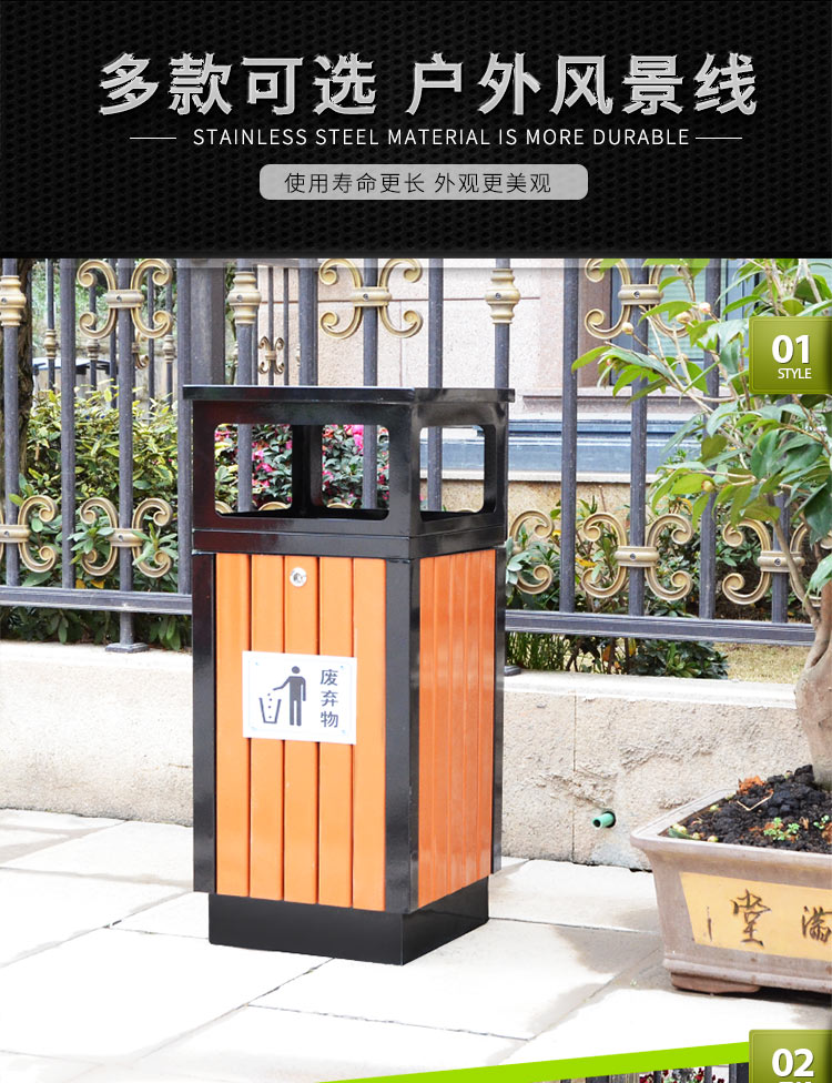 Thùng rác ngoài trời thùng rác thép không gỉ hộp công viên sân trong phong cảnh thép hình tròn vệ sinh môi trường ngoài trời thùng rác thương mại