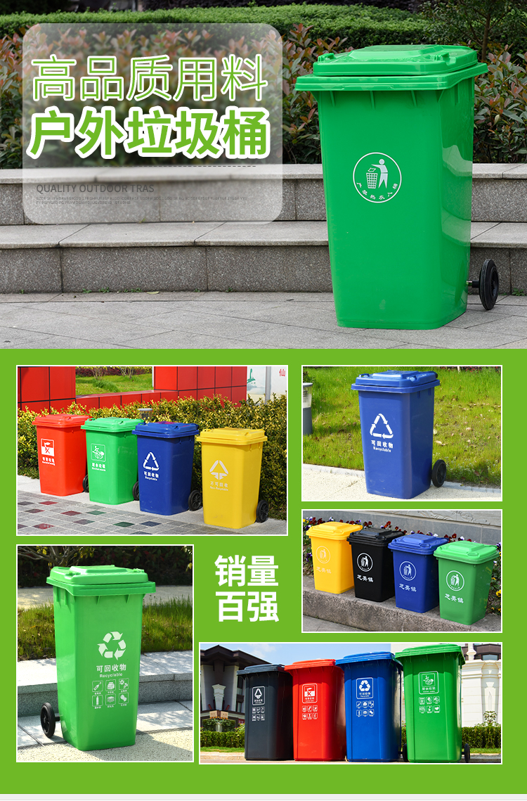 Thùng rác ngoài trời thương mại lớn 240 lít phân loại cộng đồng Thùng vệ sinh đạp chân 120L có nắp pha lê nhựa 100 lít là lựa chọn lý tưởng cho không gian công cộng, sân vườn hoặc khu đô thị. Sản phẩm giúp nâng cao hình ảnh chuyên nghiệp và sạch đẹp cho môi trường sống.