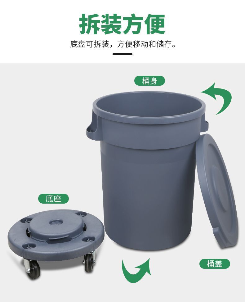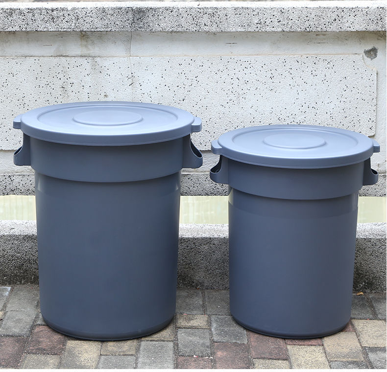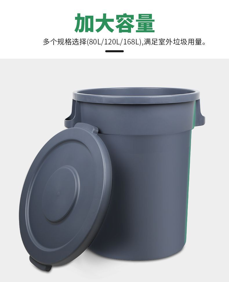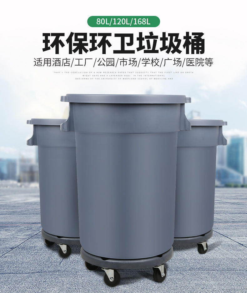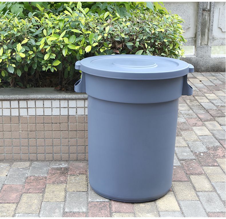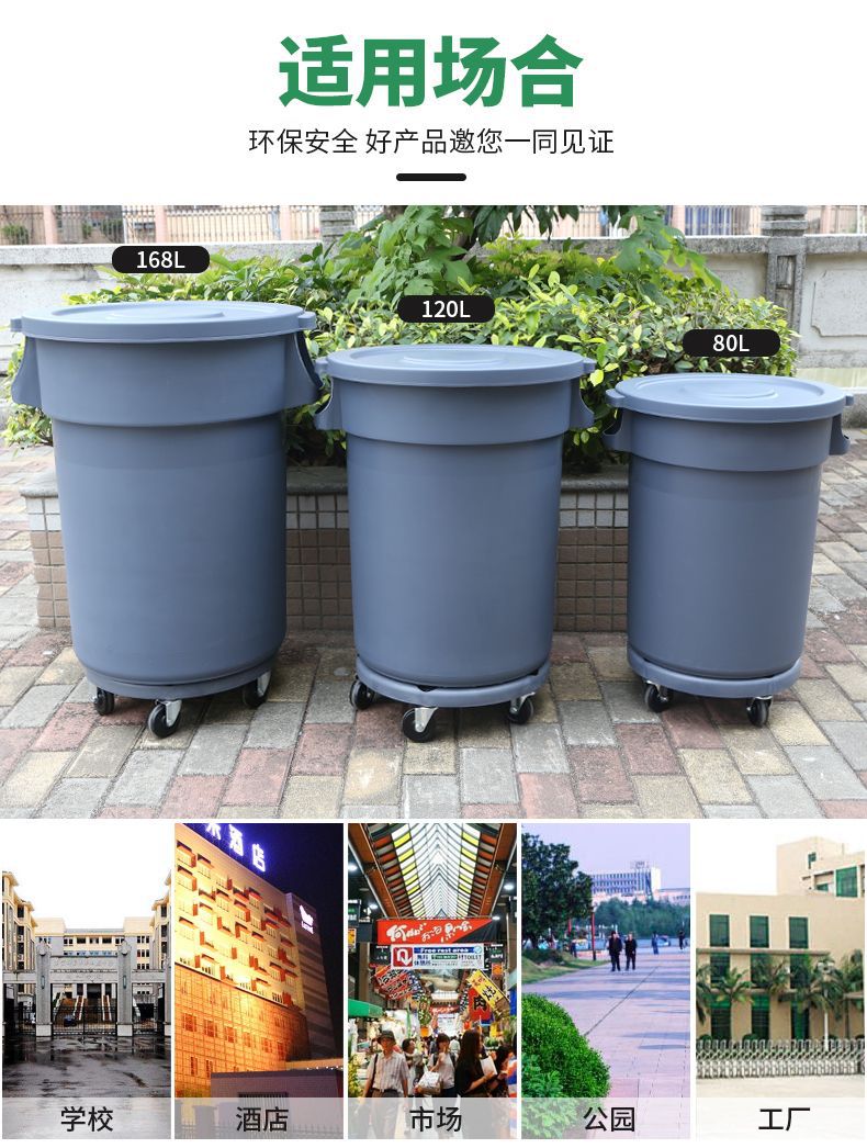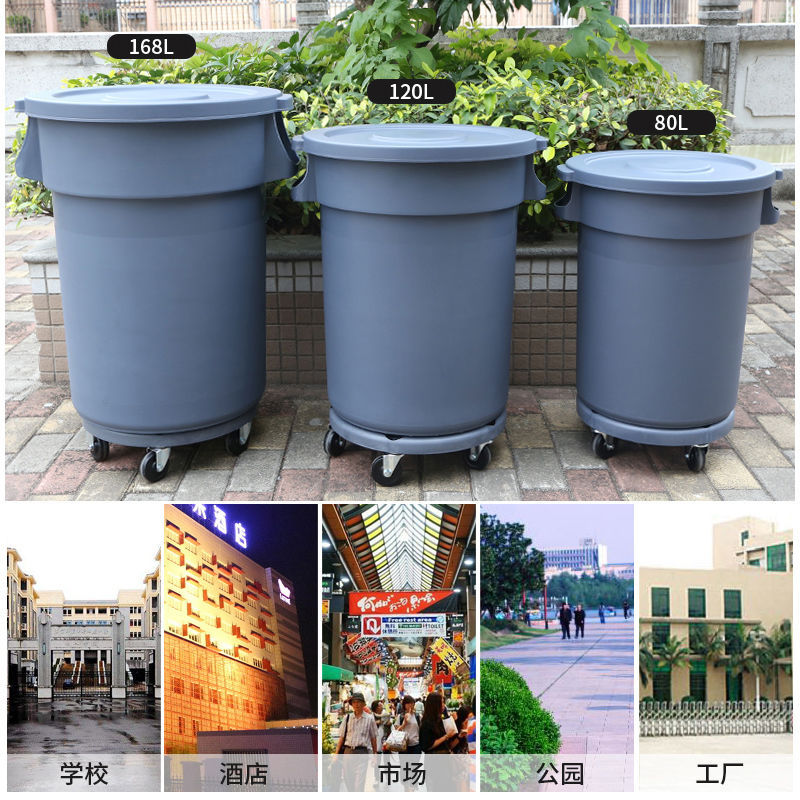 Thùng rác nhà bếp cỡ lớn xô nhựa tròn vệ sinh ngoài trời có bánh xe phủ phục vụ ăn uống siêu lớn
