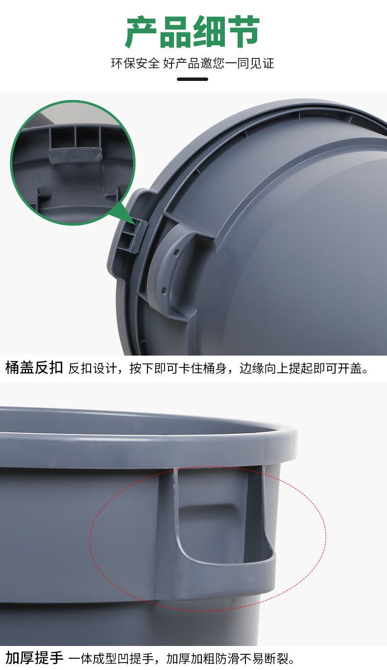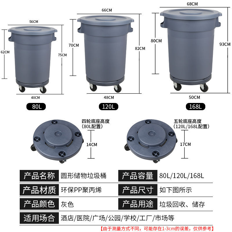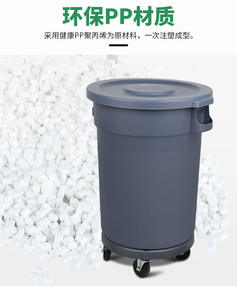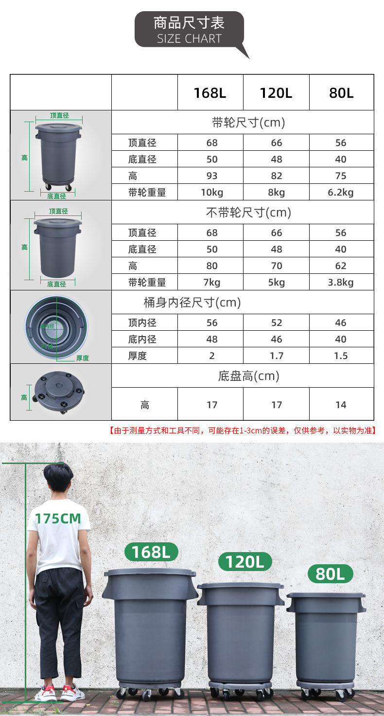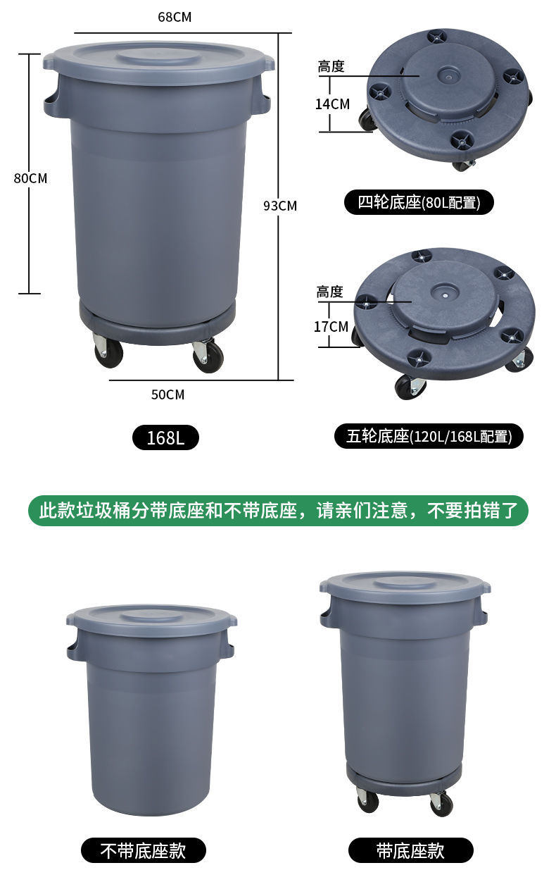 Thùng rác nhà bếp cỡ lớn xô nhựa tròn vệ sinh ngoài trời có bánh xe phủ phục vụ ăn uống siêu lớn
