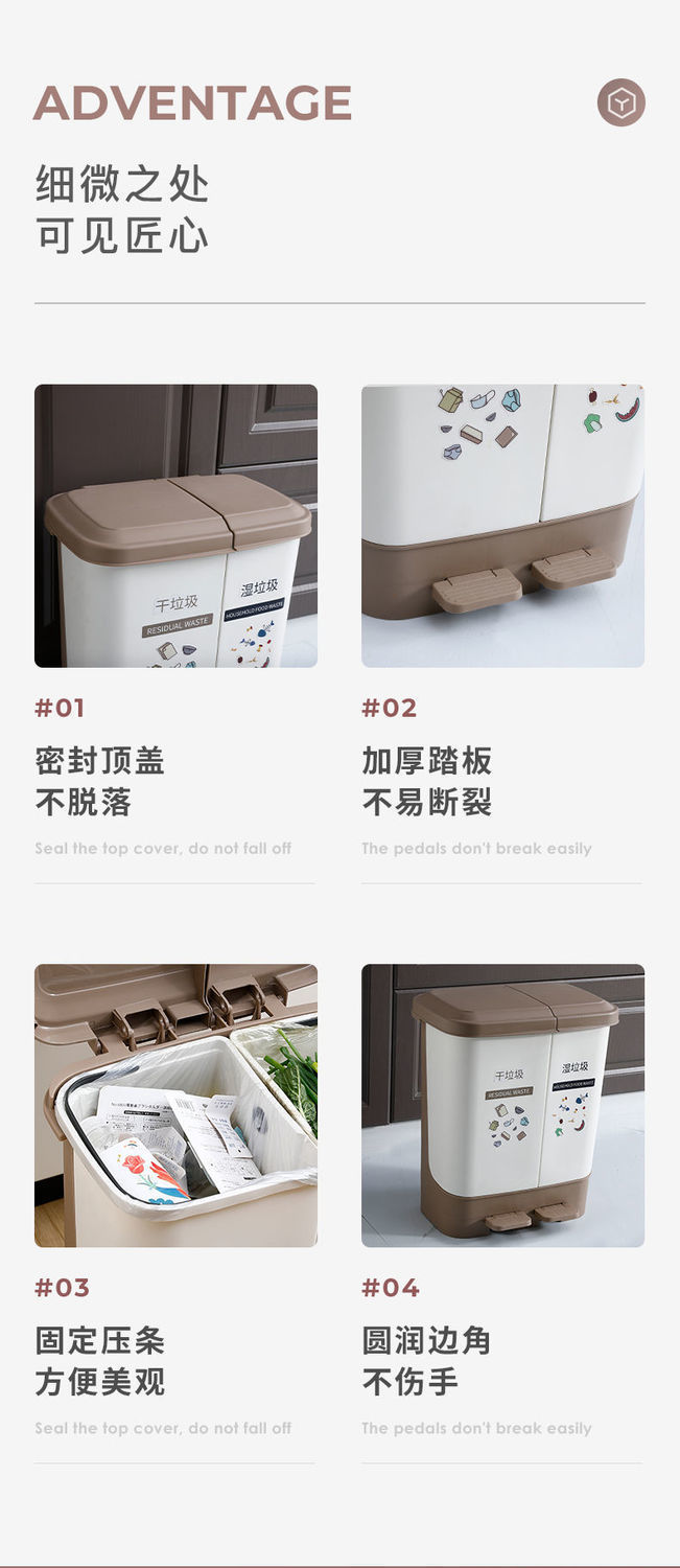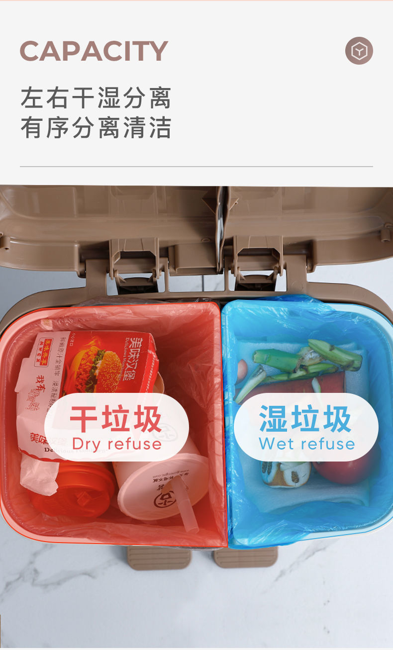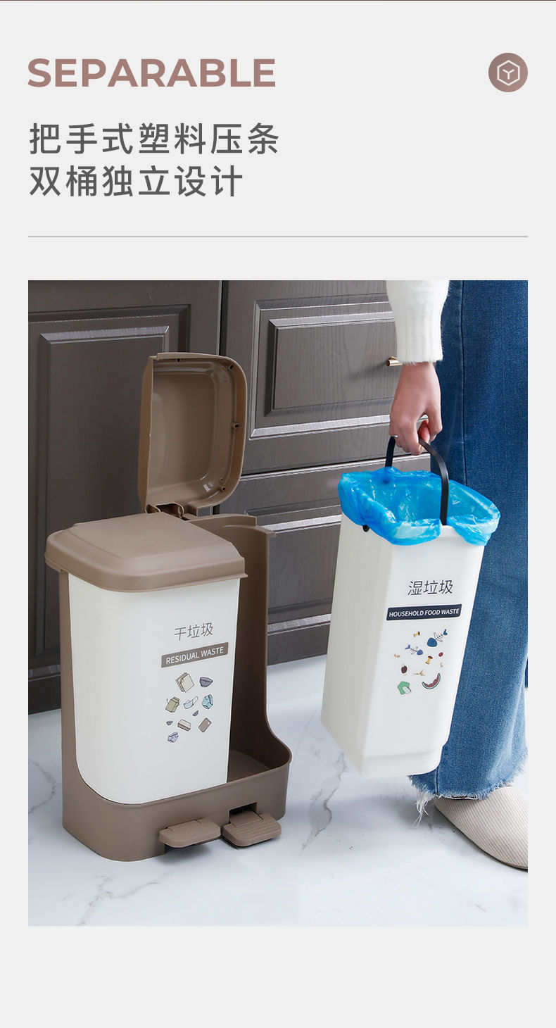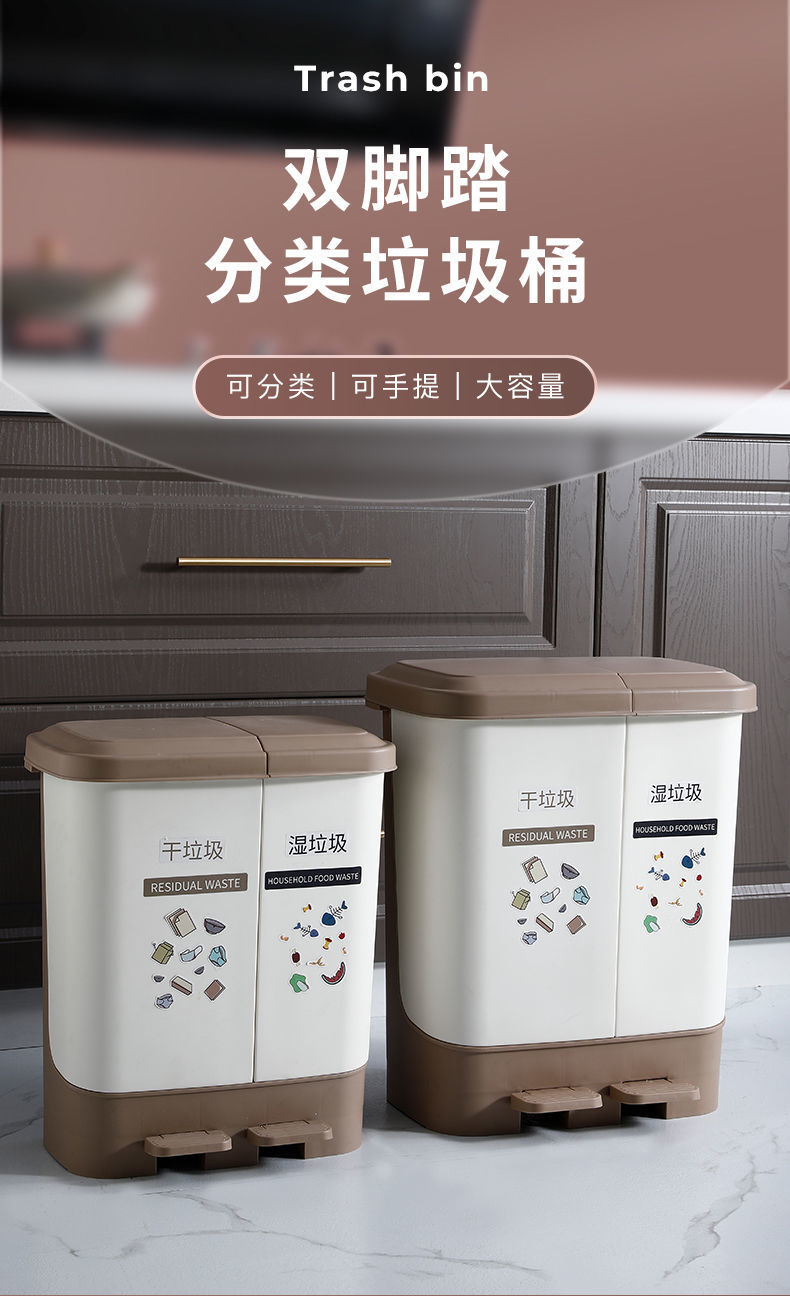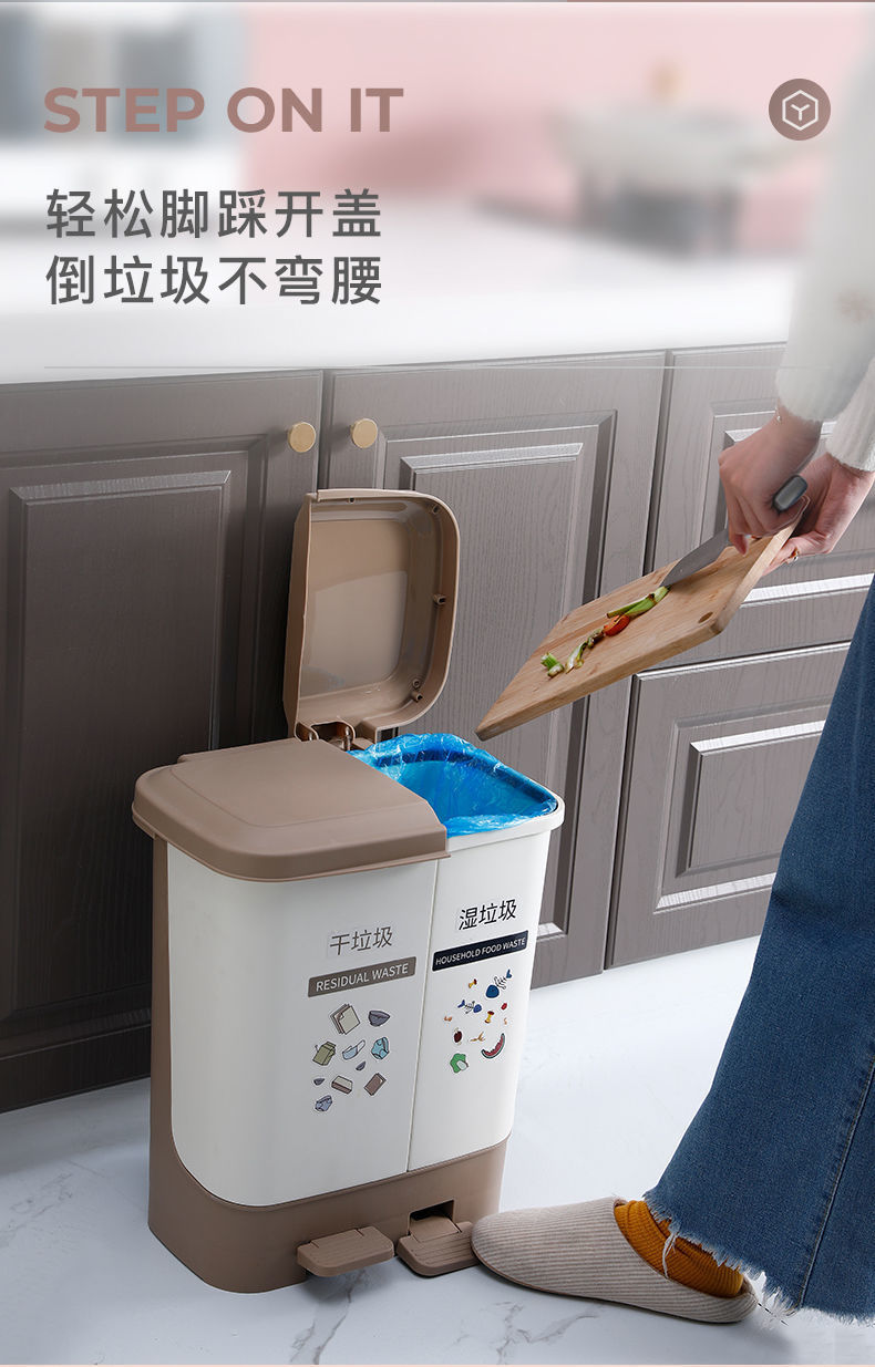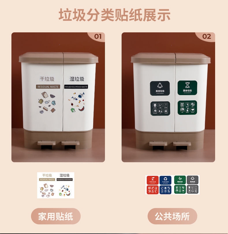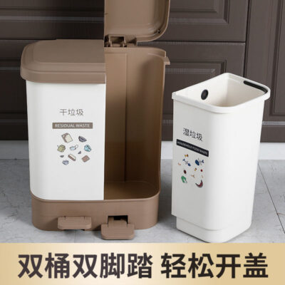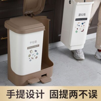 Thùng rác nhà bếp phân loại khô và ướt phân loại rác gia đình có nắp thùng đôi đạp đôi văn phòng loại có còi lớn