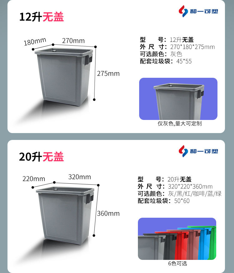 Nơi xuất xứ: Diêm Thành, Giang Tô Mã hàng: L1 Thương hiệu: Heyi Nhựa Có thể tùy chỉnh: Có thể tùy chỉnh Màu sắc: đỏ / cà phê / xanh dương / xanh lá cây / xám / đen / đen Phân khúc giá: 10-20 nhân dân tệ Thời gian ra mắt sản phẩm: Khác Chất liệu nhựa mới chiếm Tỷ lệ: Chất liệu mới 100% Phương pháp đóng mở: loại nắp bập bênh Trọng lượng: 0,41-3 Còn hàng: Còn hàng Chức năng: Thùng rác thân thiện với môi trường, thùng rác nhà bếp Chất liệu: Nhựa Kích thước: kéo xuống để lựa chọn sản phẩm có thông số kỹ thuật khác nhau, màu sắc tùy chỉnh, LOGO/60L Không nắp/60L có nắp/40L không nắp/40L có nắp/20L không nắp/20L có nắp/12L không nắp/Vui lòng liên hệ bộ phận dịch vụ khách hàng nếu bạn cần in LOGO/ Túi đựng rác 12L (250 cái)/Túi đựng rác 40/60L (50 cái) /Túi đựng rác 20L (250 cái)/Thùng rác 90L không nắp/nắp 60L/nắp 60L Thuộc tính thương mại: Thương mại trong nước Cho dù xuất khẩu xuyên biên giới Nguồn cung cấp độc quyền : Không Số lượng hộp: 1 Kịch bản sử dụng: Dung tích gia đình: 12L trở lên Dù nhập khẩu: Không Bằng sáng chế: Không Hình dạng: Hình trụ dài Tổng trọng lượng: Nhiều thông số kỹ thuật