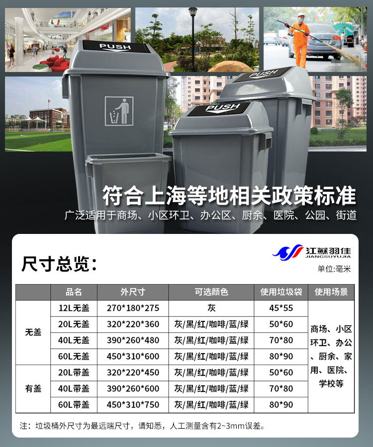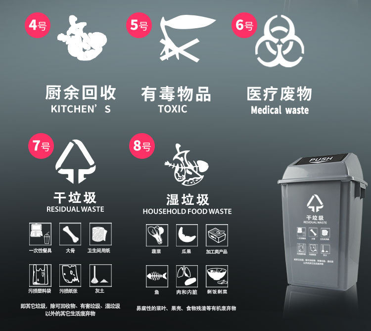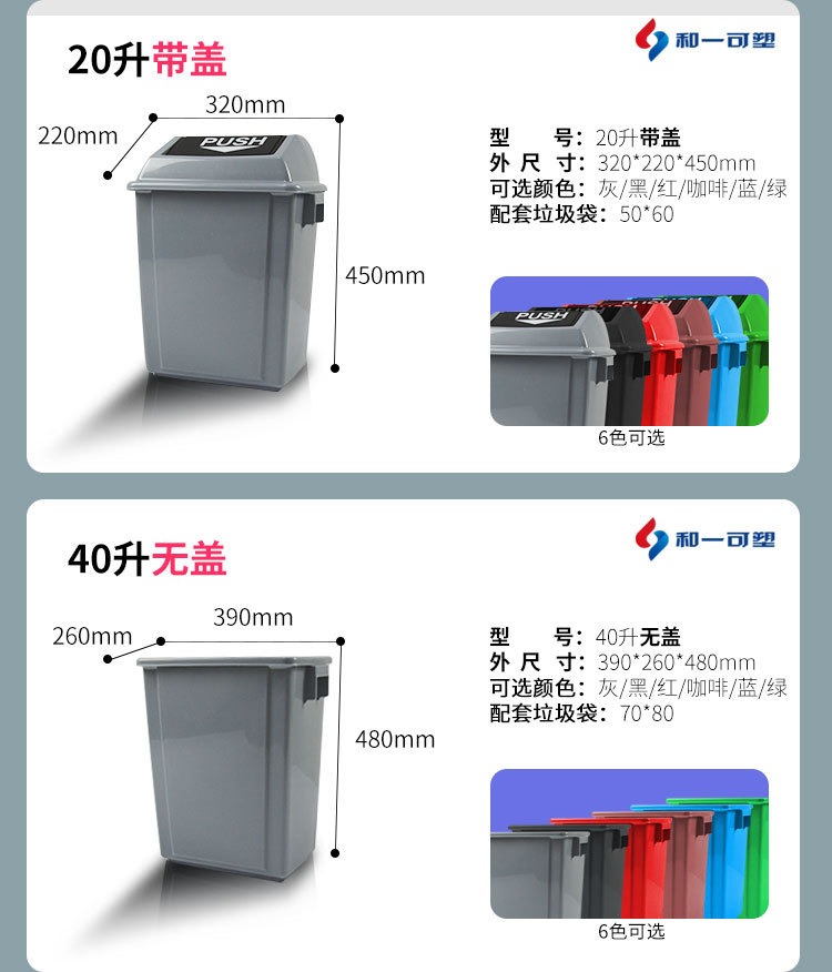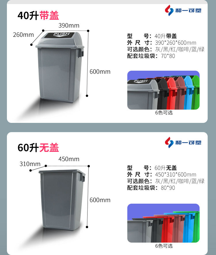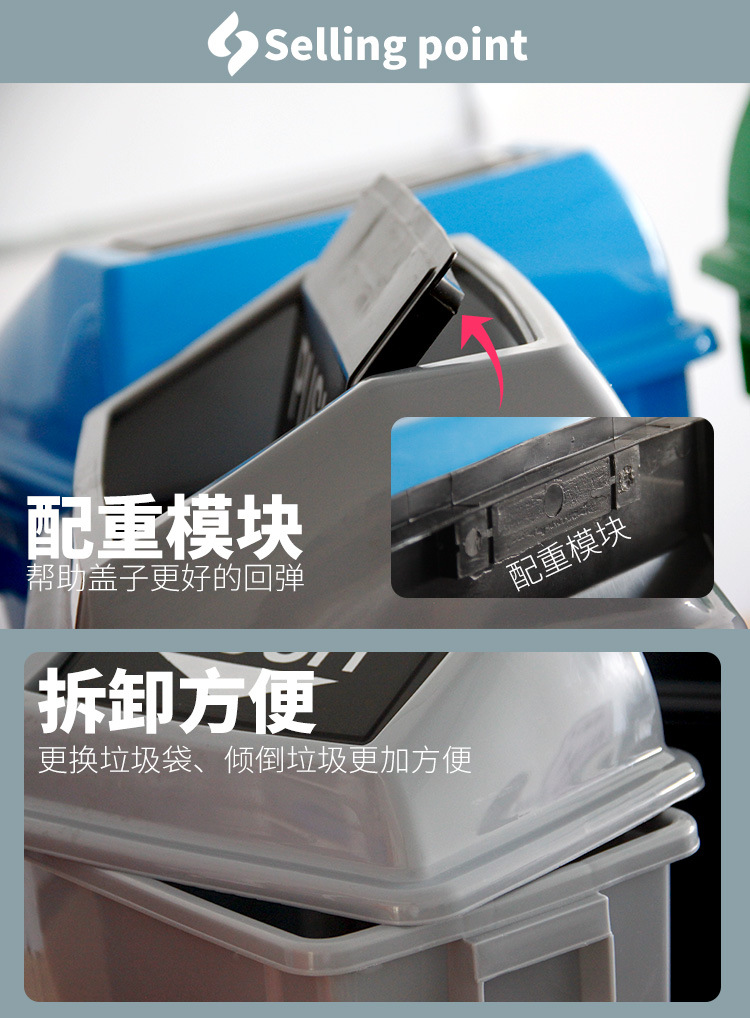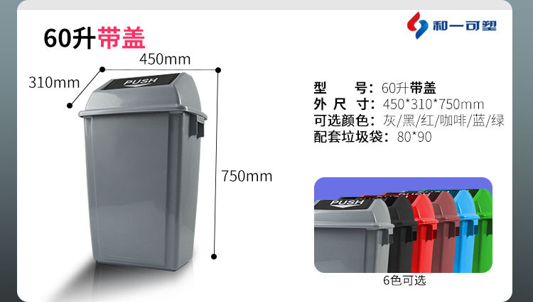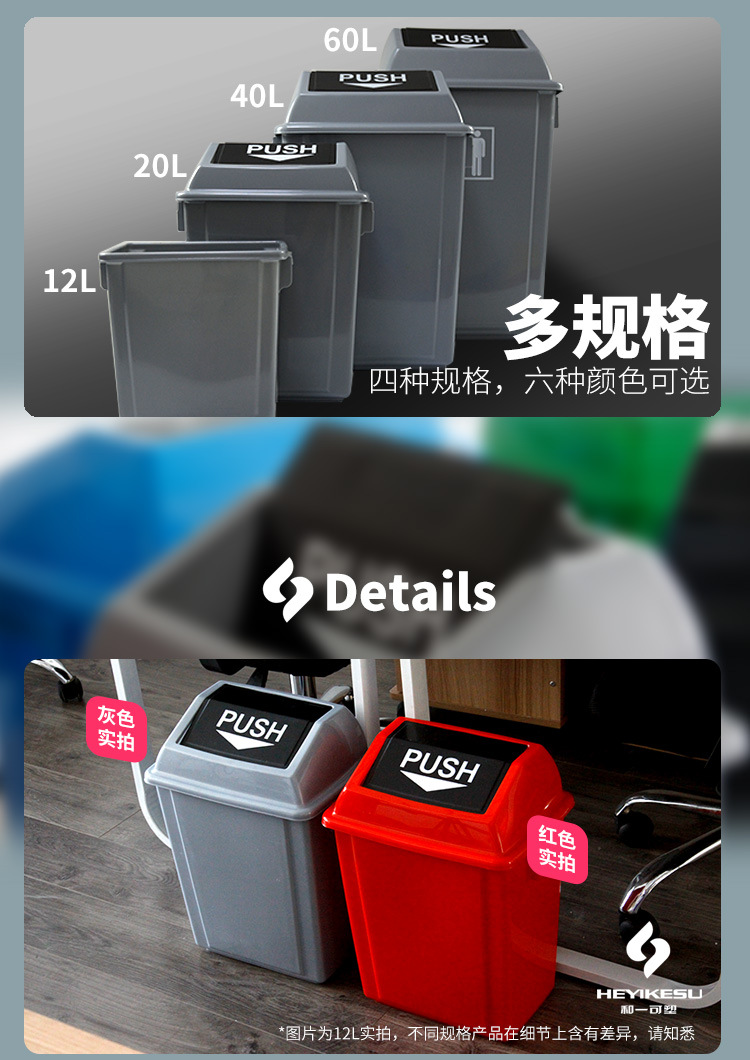 Thùng rác nhựa hình chữ nhật có nắp bật thùng rác y tế nhà bếp thùng rác ngoài trời thân thiện với môi trường Nhà sản xuất thùng rác Bắc Kinh