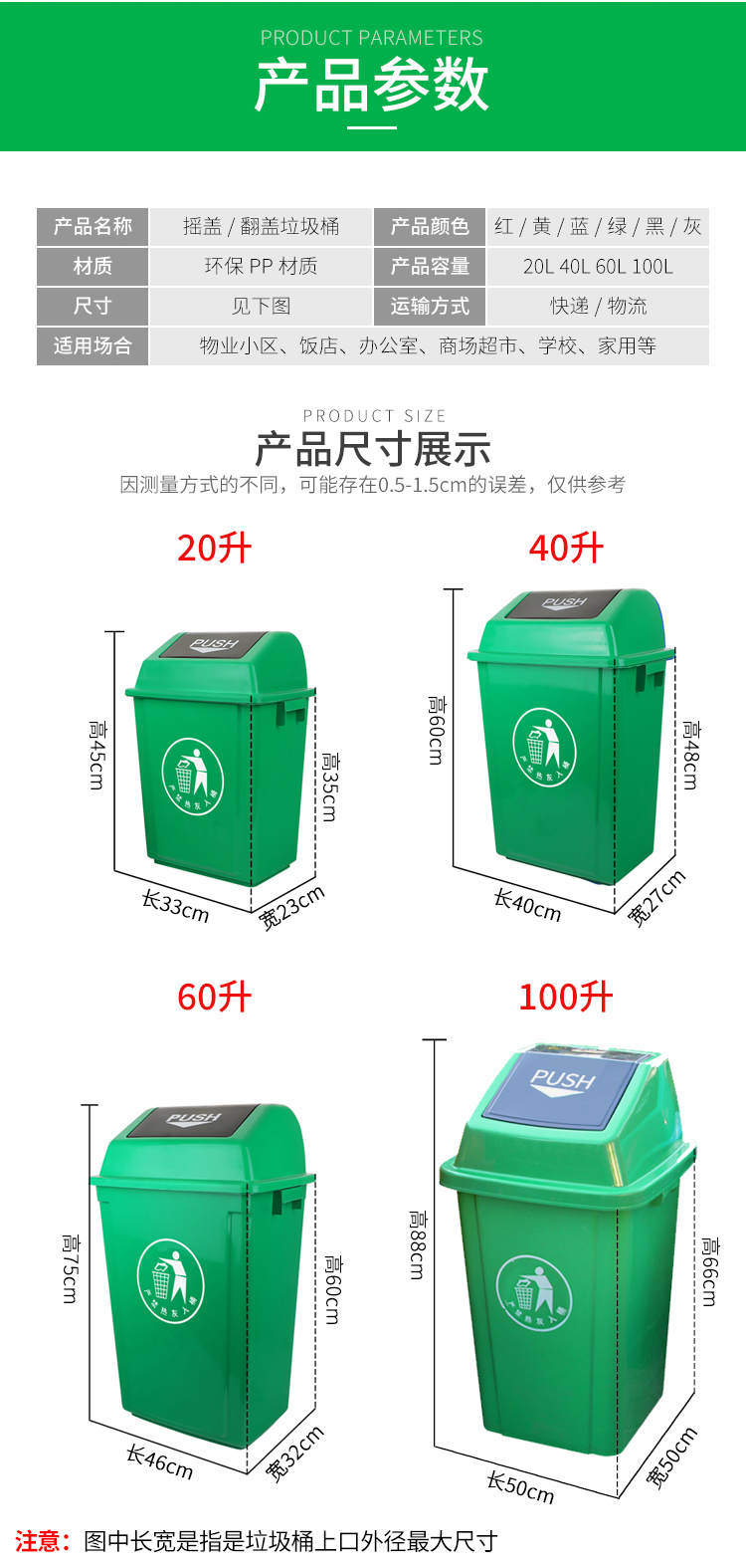 Sản phẩm nổi bật với các đặc điểm: Thùng rác nhựa phân loại W1TR thương mại phục vụ văn phòng lớn ngoài trời có nắp 100L hộ gia đình không nắp phòng khách Quý khách có nhu cầu mua Thùng rác ngoài trời nhập khẩu vui lòng liên hệ với chúng tôi để được tư vấn hỗ trợ. Dịch vụ mua hàng Trung Quốc sẽ hỗ trợ quý khách mua hàng từ nhà cung cấp và giao tới tận tay quý khách hàng..Xuất xứ: Khác Mã hàng: F7H8J7H9TMT89 Thương hiệu: Màu khác: Xám lớn có nắp 60 lít/Xám vừa 40 lít có nắp/Xám nhỏ 20 lít có nắp/màu vàng lớn 60 lít có nắp/Vàng vừa 40 lít có nắp/ Cỡ nhỏ màu vàng 20 lít có nắp/Cỡ lớn 60 lít có nắp (ghi chú màu)/Cỡ vừa 40 lít có nắp (ghi chú màu)/Cỡ nhỏ 20 lít có nắp (ghi chú màu)/Thùng 25 lít màu xanh có nắp màu vàng/40 Thùng màu xanh lít có nắp màu vàng/Cỡ cực lớn 100 lít có nắp (ghi chú màu)/Cỡ lớn 60 lít không nắp (vui lòng ghi chú màu)/Cỡ vừa 40 lít không nắp (vui lòng ghi chú màu)/Cỡ nhỏ 20 lít không nắp ( xin lưu ý màu sắc) Xin lưu ý)/Túi đựng rác cỡ nhỏ dày (100 cái)/Túi đựng rác cỡ vừa 15 gam (50 cái)/Túi đựng rác cỡ vừa 20 gam (50 cái)/Túi đựng rác cỡ lớn mỏng 20 gam (50 cái) /Túi đựng rác cỡ lớn 25g (50 cái)/Túi đựng rác cỡ lớn 30g (50 cái)/Túi đựng rác cỡ lớn 35g (50 cái)/Túi đựng rác cỡ lớn 40g (50 cái)/Túi đựng rác cỡ nhỏ siêu dày (50 cái) )/Túi đựng rác cỡ nhỏ túi đựng rác cực dày (50 miếng) Thời gian ra mắt sản phẩm: Các phương pháp đóng mở khác: Loại nắp xoay Trọng lượng: Chức năng khác: Chất liệu khác: Nhựa Cơ quan kiểm tra xuất khẩu: Khác Số lượng đóng hộp: Các kịch bản sử dụng khác: Dung tích thương mại: 12L trở lên Có nên nhập khẩu: Không Bằng sáng chế: Không Hình dạng: Hình trụ dài Tổng trọng lượng: Khác