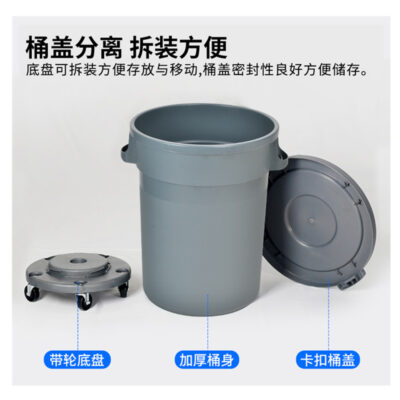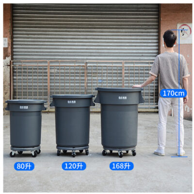 Thùng rác nhựa ròng rọc nắp tròn dày 80 lít 120 168 lít thùng rác vệ sinh ngoài trời bảo quản
