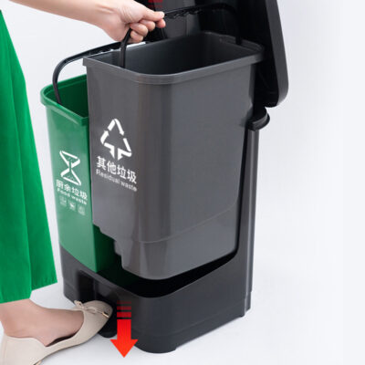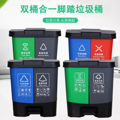 Thùng rác phân loại hai thùng hai màu di động có nắp đạp hộ gia đình thùng rác nhựa phân loại khô và ướt thùng rác vệ sinh ngoài trời