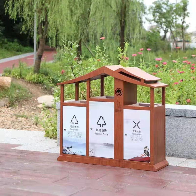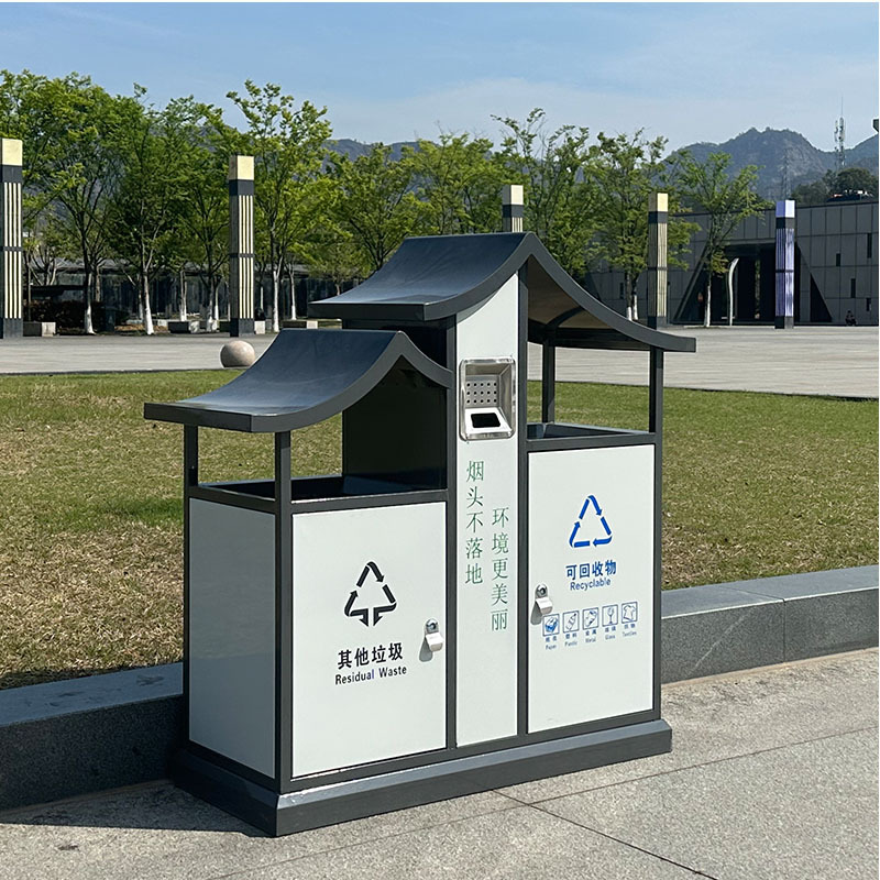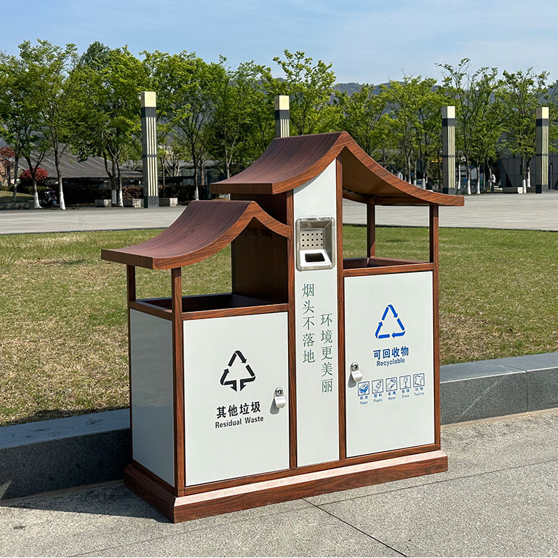 Thùng rác phân loại kiểu Trung Quốc mới, công viên sáng tạo ngoài trời, danh lam thắng cảnh, xô đôi ngoài trời, hộp bóc vỏ kiểu Trung Quốc, giải trí trong sân