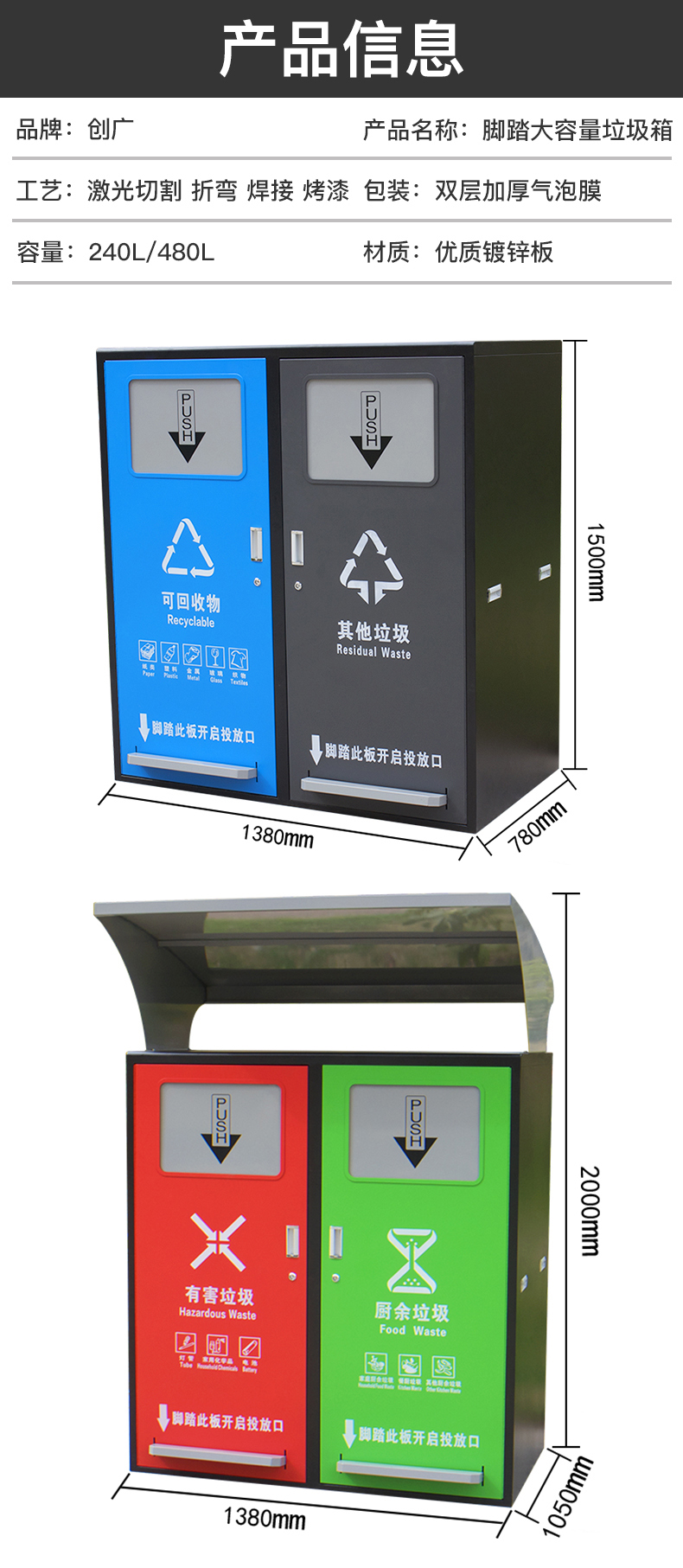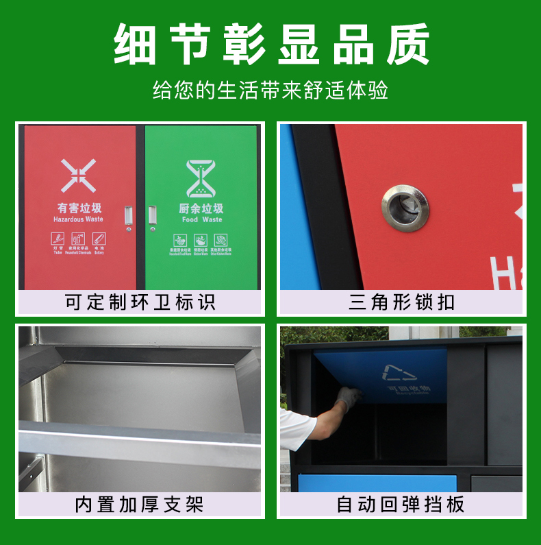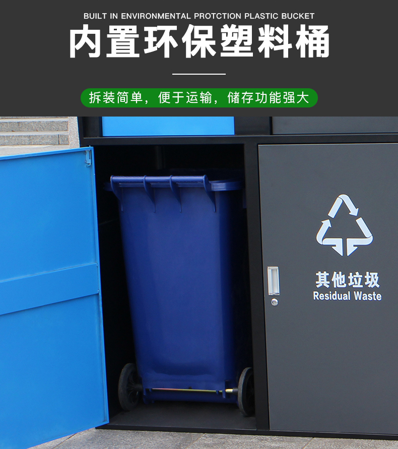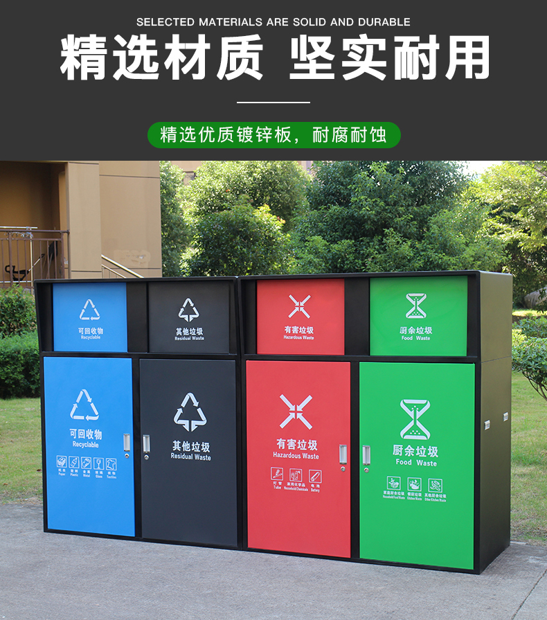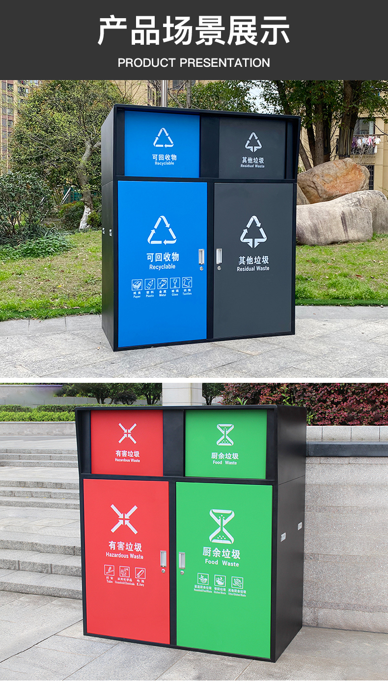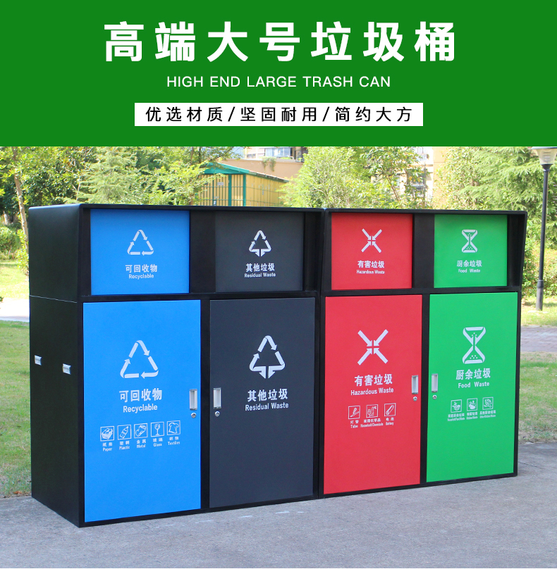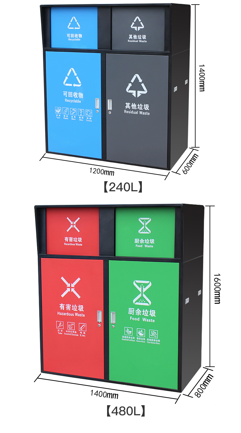Sản phẩm nổi bật với các đặc điểm: Thùng rác phân loại lớn dung tích 240L vệ sinh ngoài trời có nắp đậy thùng rác lớn ngoài trời thương mại cộng đồng dân cư