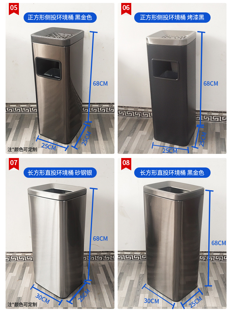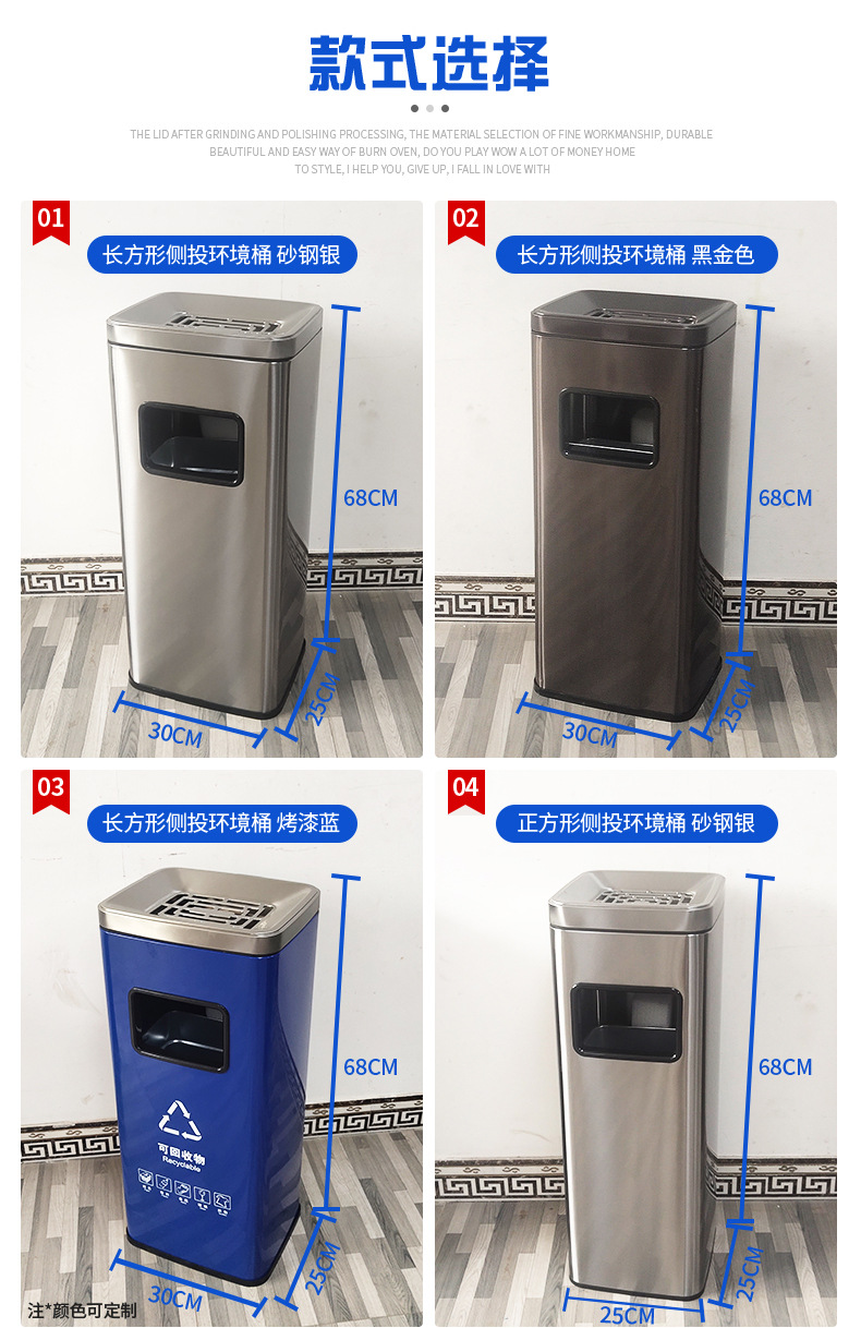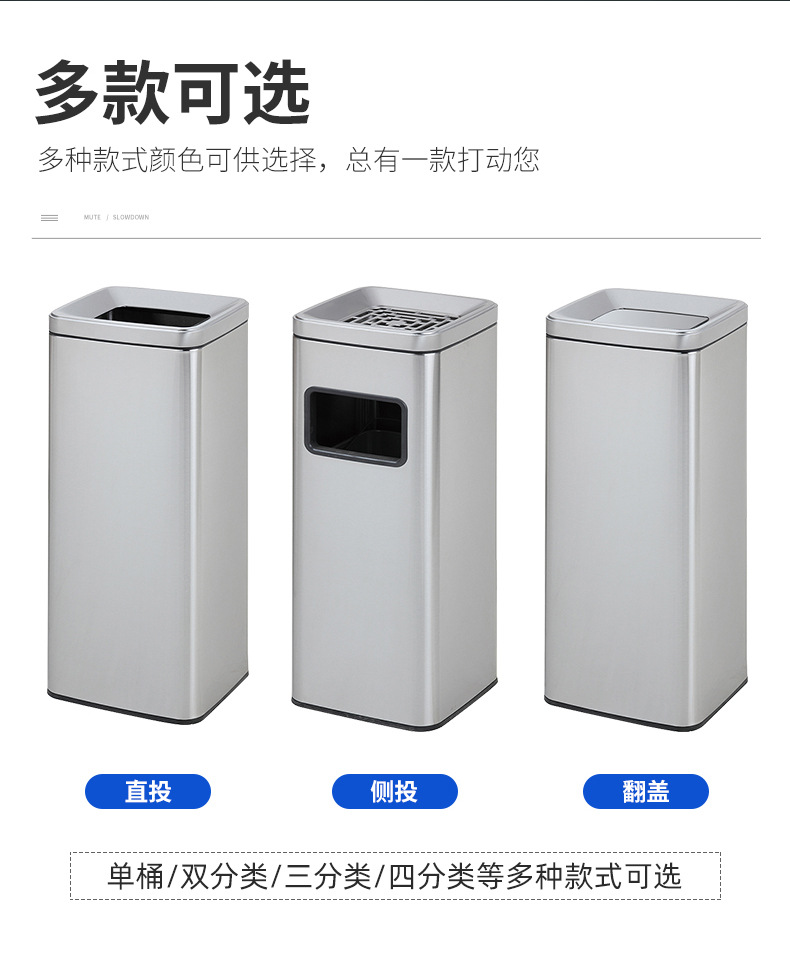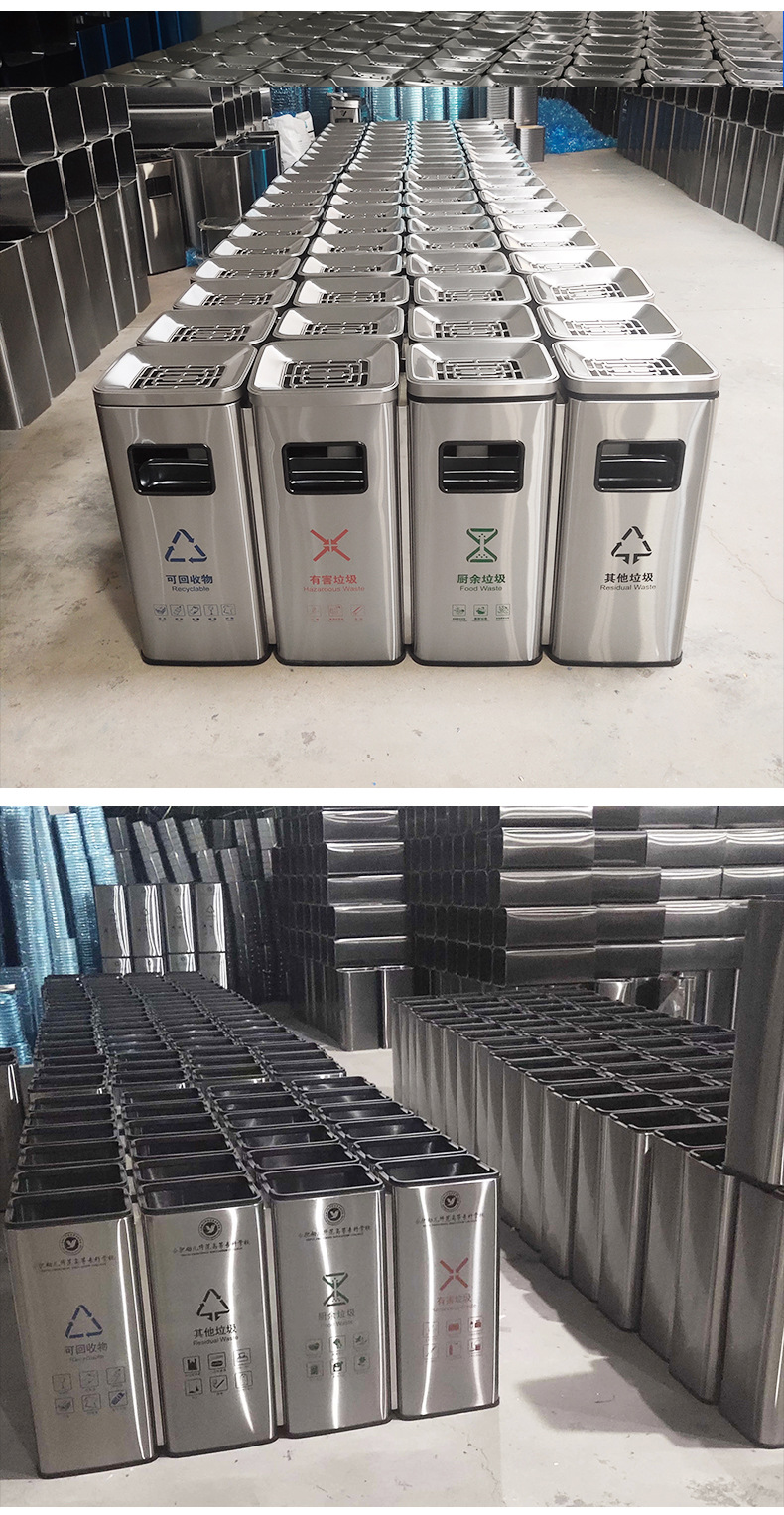 Thùng rác phân loại mở bằng thép không gỉ thẳng đứng có thể cung cấp cho trung tâm mua sắm thùng rác ngoài trời ở sảnh khách sạn